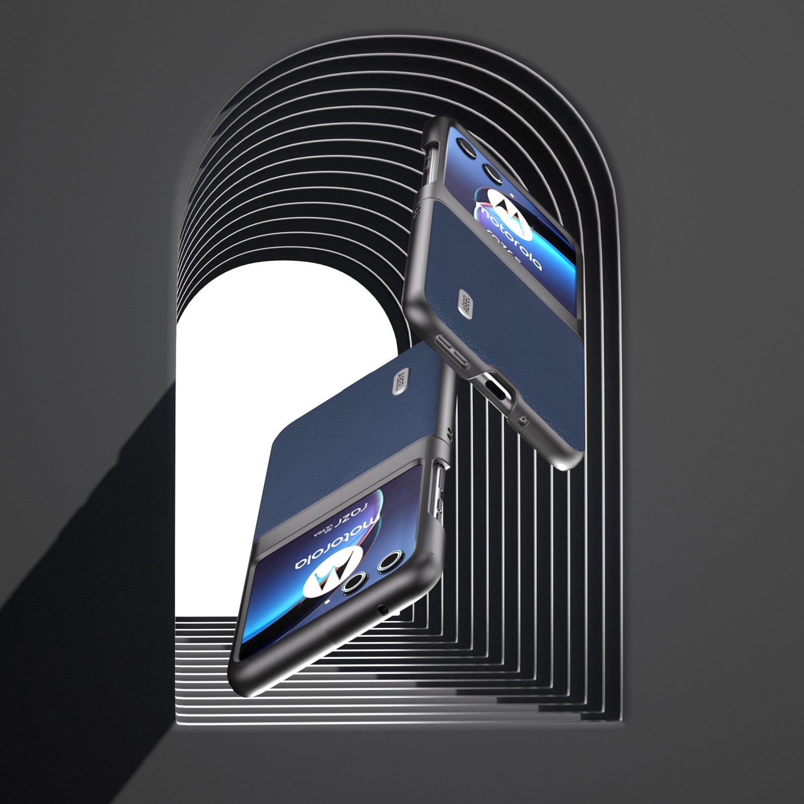 Uniqkart For Motorola Razr 40 Ultra 5G Anti-Scratch Phone Case Litchi Texture Cowhide Leather Coated PC Phone Cover - Blue