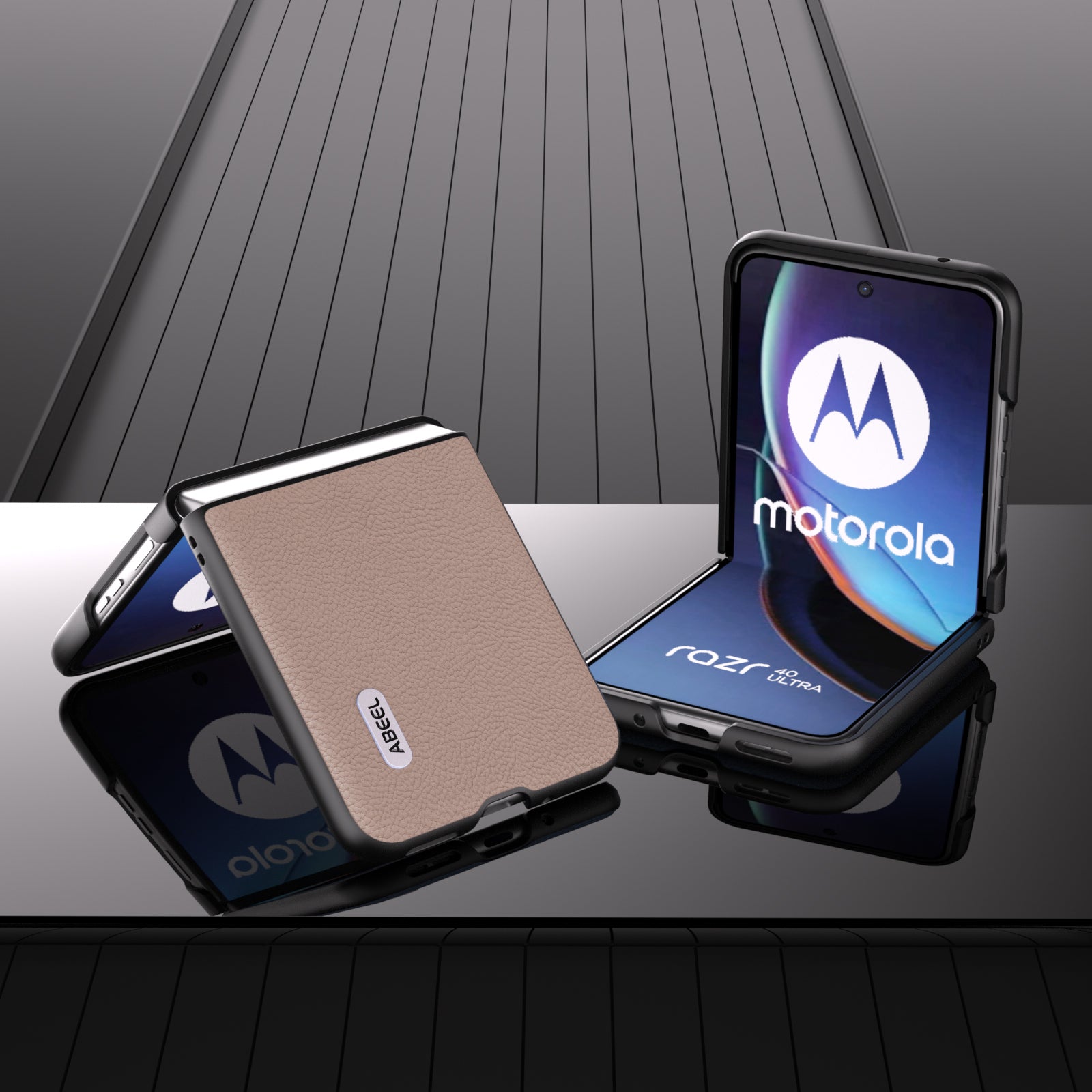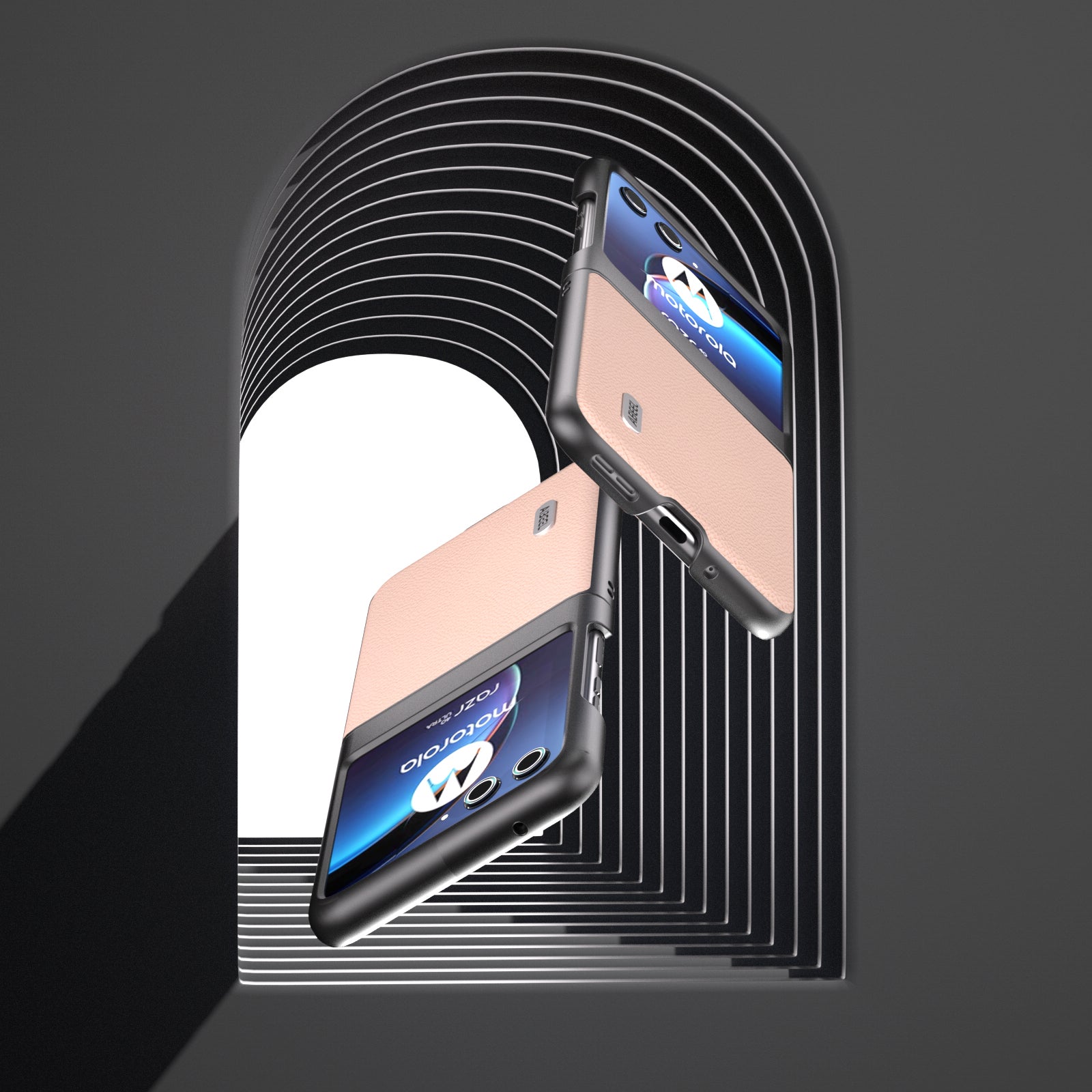 Uniqkart For Motorola Razr 40 Ultra 5G Anti-Scratch Phone Case Litchi Texture Cowhide Leather Coated PC Phone Cover - Pink