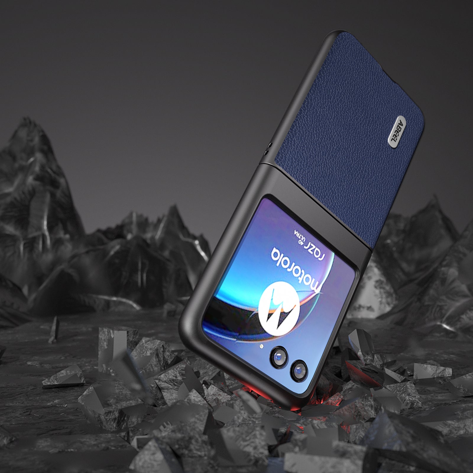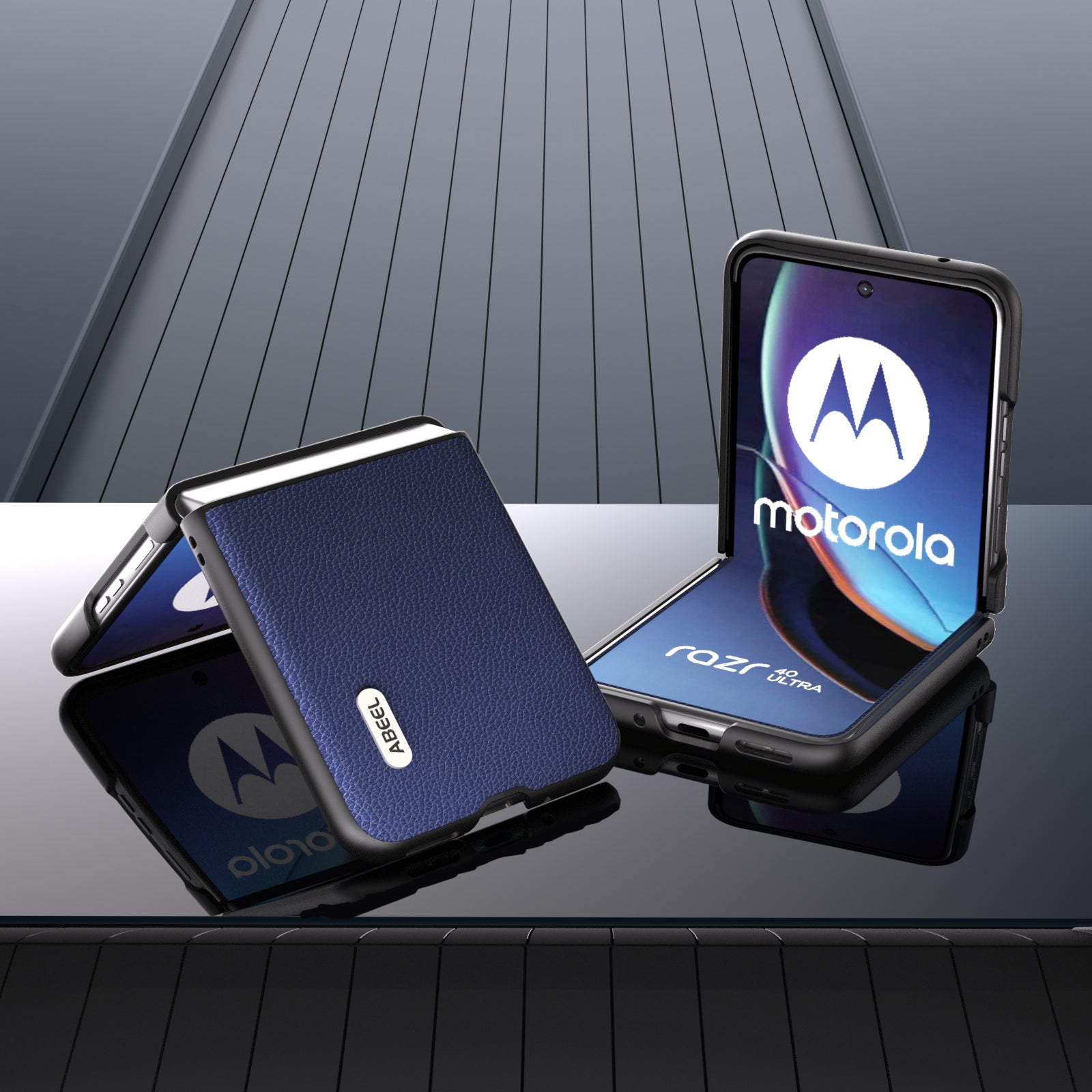 Uniqkart for Motorola Razr 40 Ultra 5G Cowhide Leather + PC Phone Case Matte Edges Phone Cover - Blue