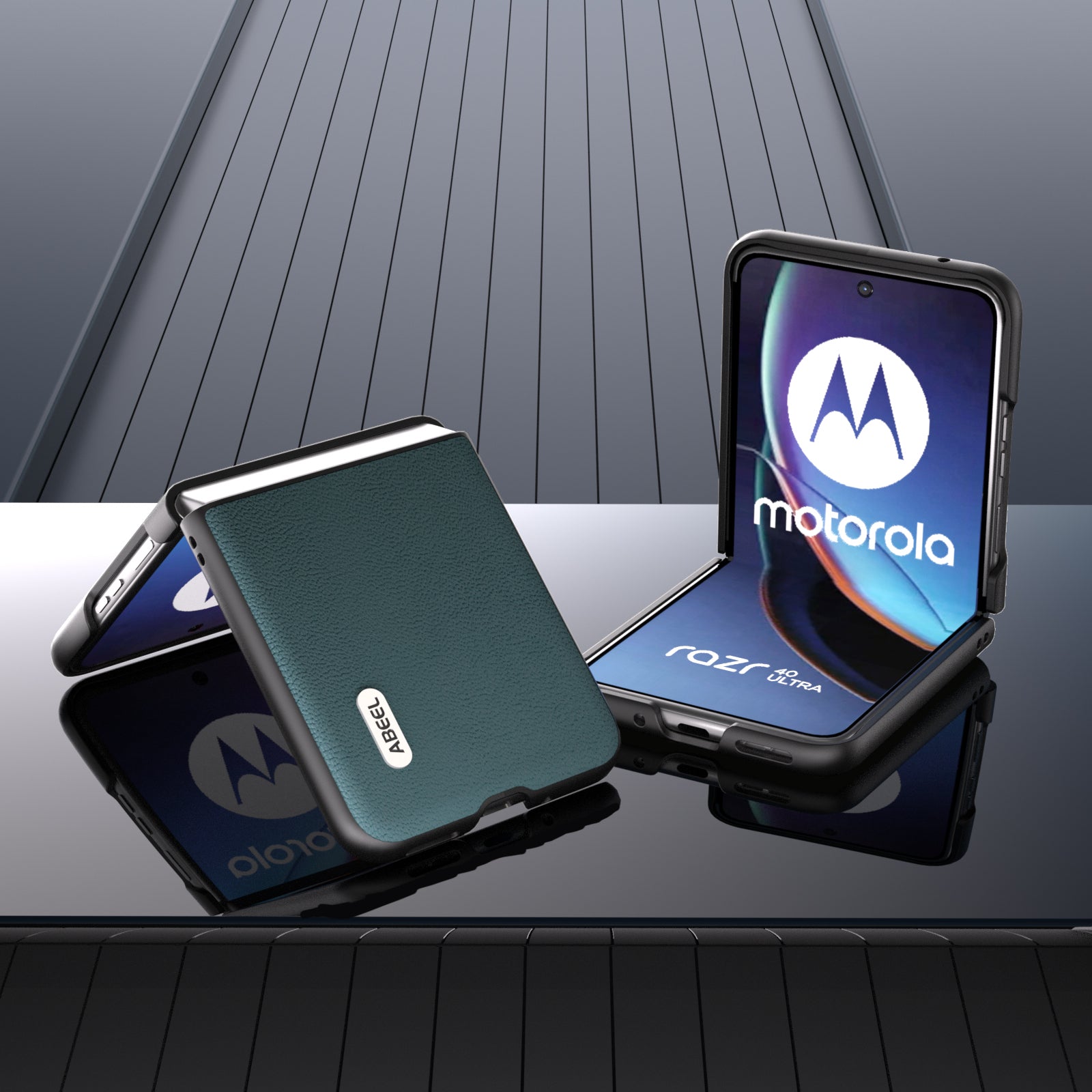 for Motorola Razr 40 Ultra 5G Genuine Cow Leather + PC Protective Shell Litchi Texture Phone Case - Midnight Green