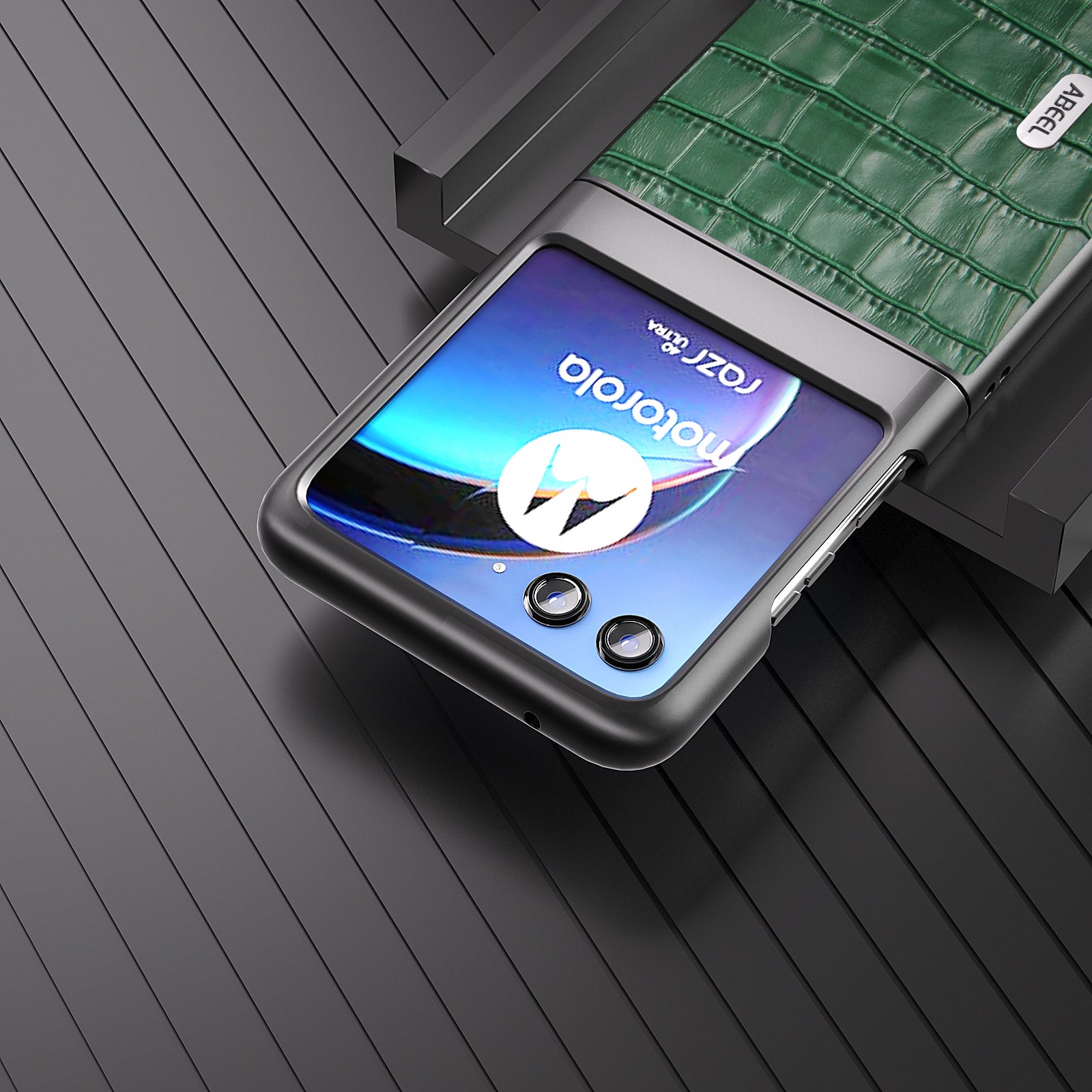 - Crocodile texture genuine cow leather + PC phone case, durable to use