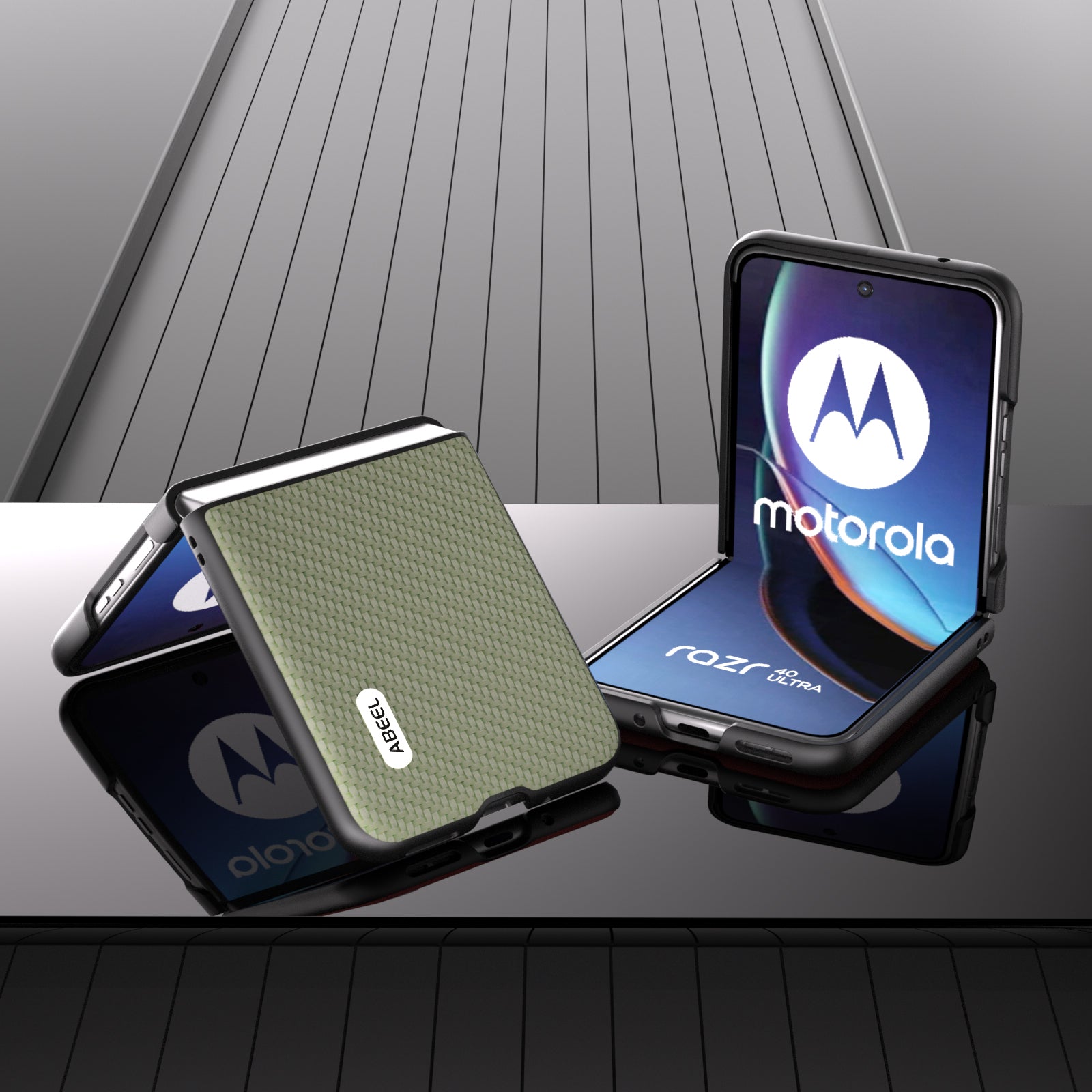 Uniqkart For Motorola Razr 40 Ultra 5G PU Leather Coated PC Case Carbon Fiber Texture Protective Phone Cover - Green