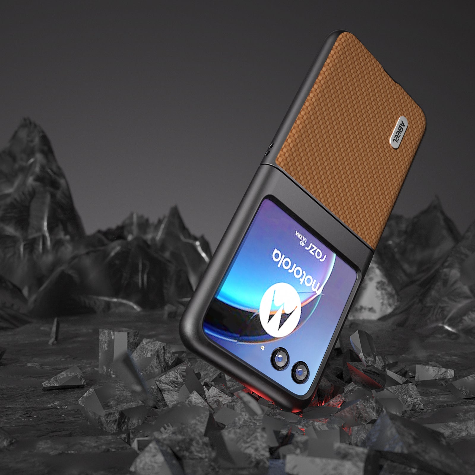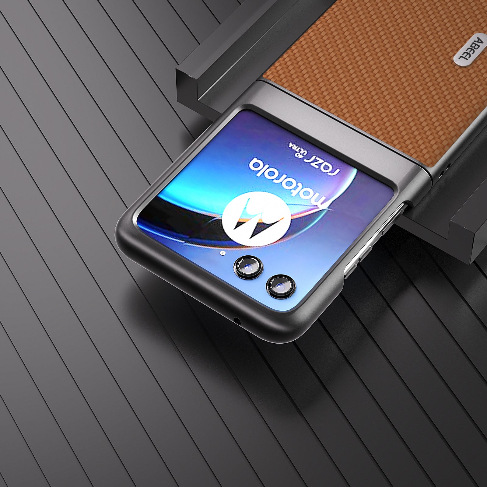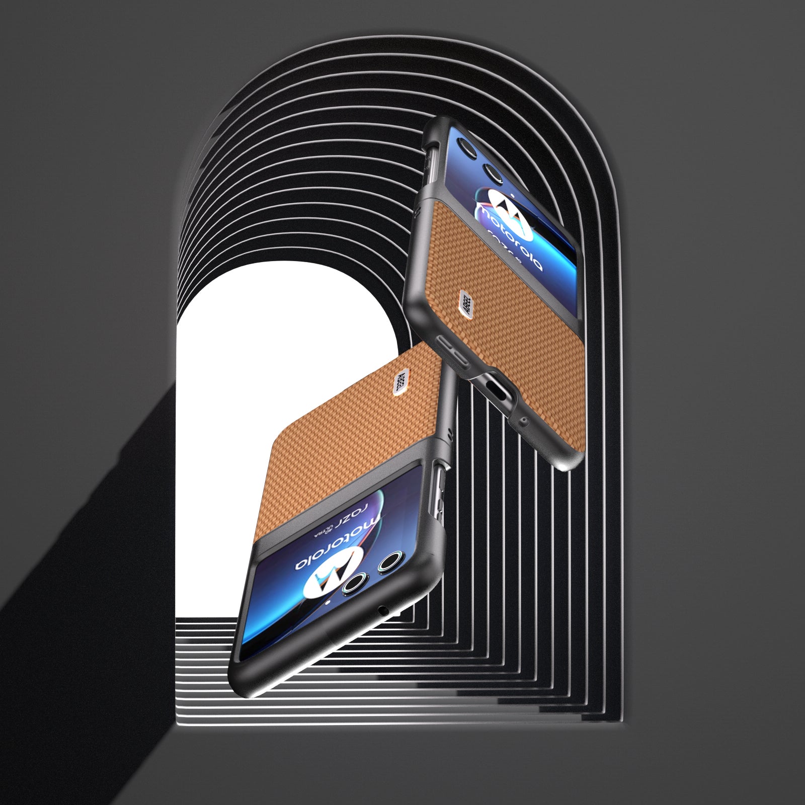 Uniqkart For Motorola Razr 40 Ultra 5G PU Leather Coated PC Case Carbon Fiber Texture Protective Phone Cover - Light Brown