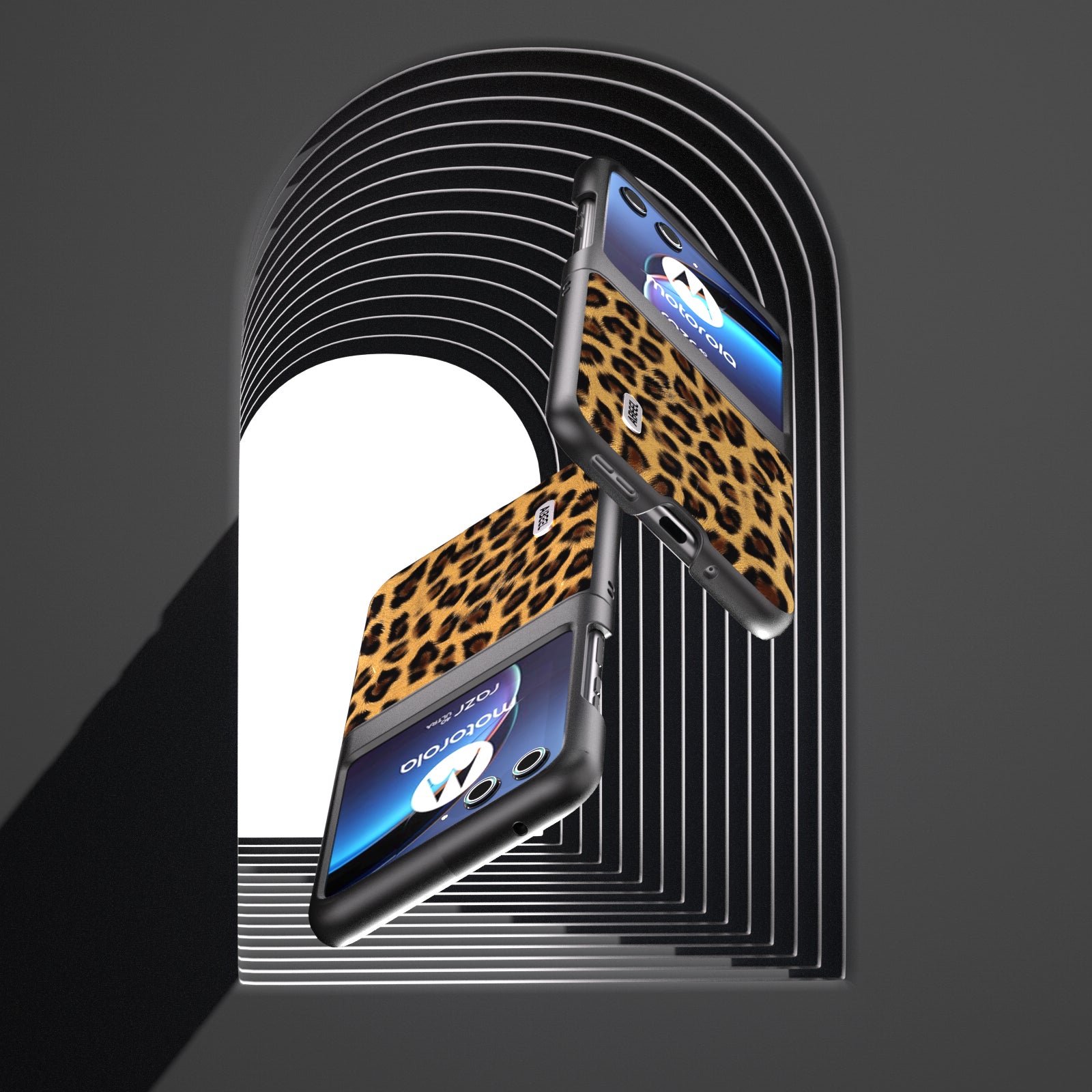 Uniqkart For Motorola Razr 40 Ultra 5G PU Leather Coated PC Phone Case Leopard Pattern Phone Cover - Gold