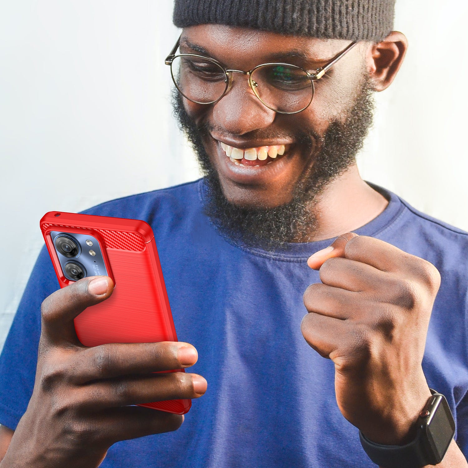 Uniqkart for Motorola Edge 40 5G Brushed Phone Case Carbon Fiber Texture TPU Cover - Red