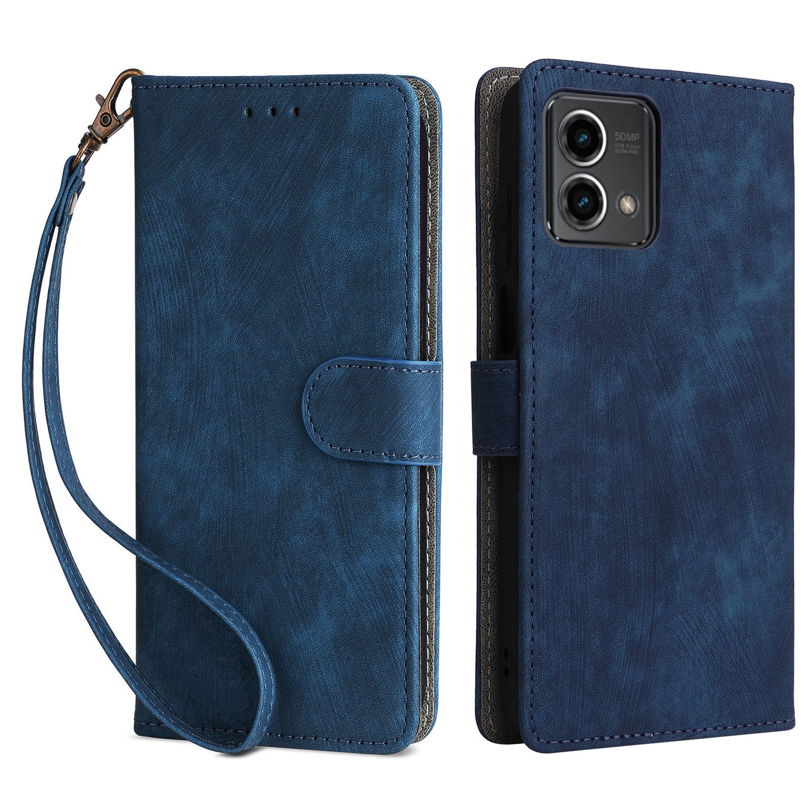 Uniqkart for Motorola Moto G Stylus (2023) Drop-proof Phone Cover RFID Blocking Wallet Stand Leather Case - Blue