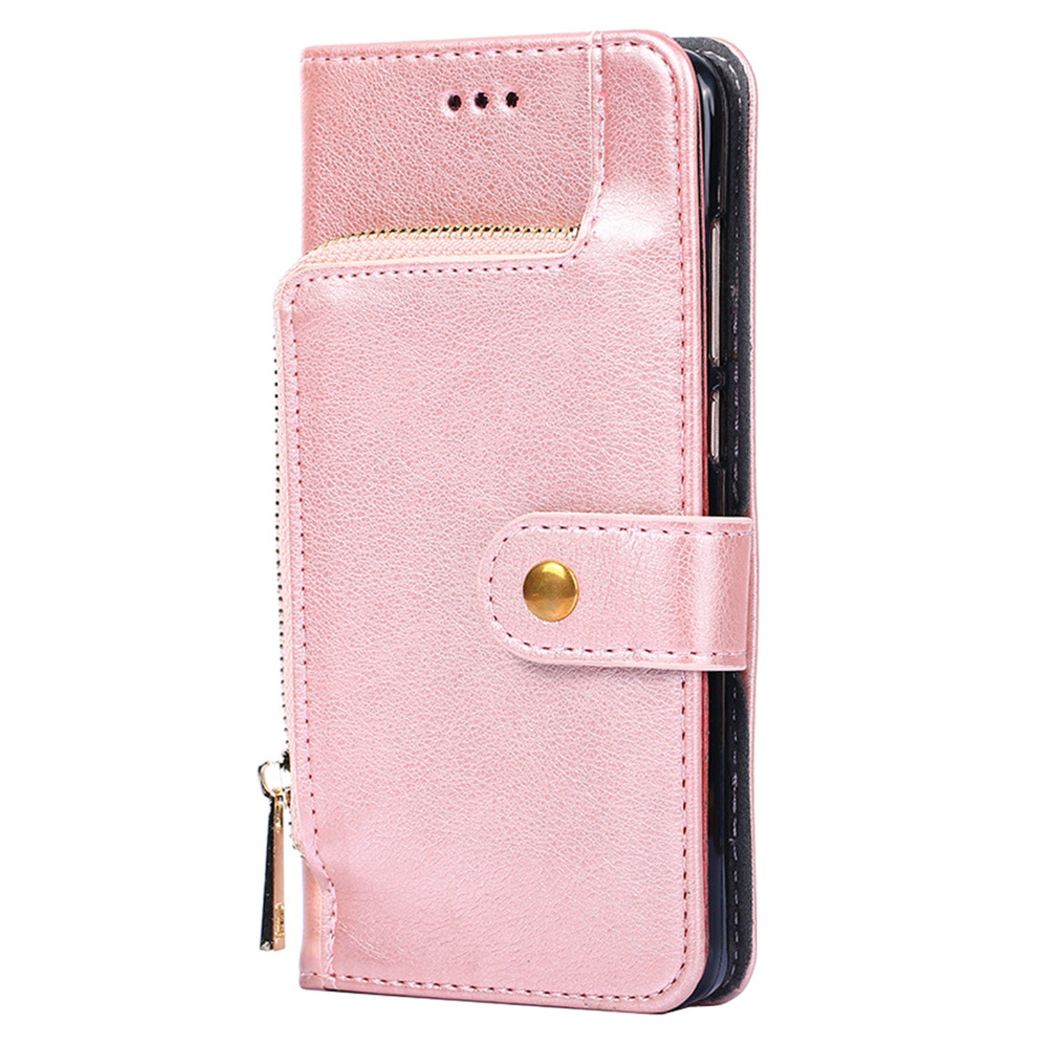 For Motorola Moto G34 5G Case Zipper Pocket Leather Wallet Anti-shock Phone Cover - Rose Gold