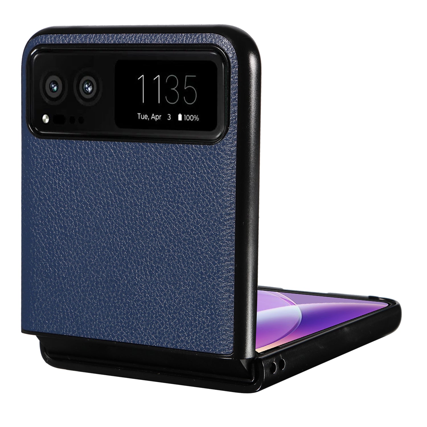 Uniqkart for Motorola Razr 40 5G Litchi Texture Phone Case PU Leather Coated PC Anti-drop Cover - Dark Blue