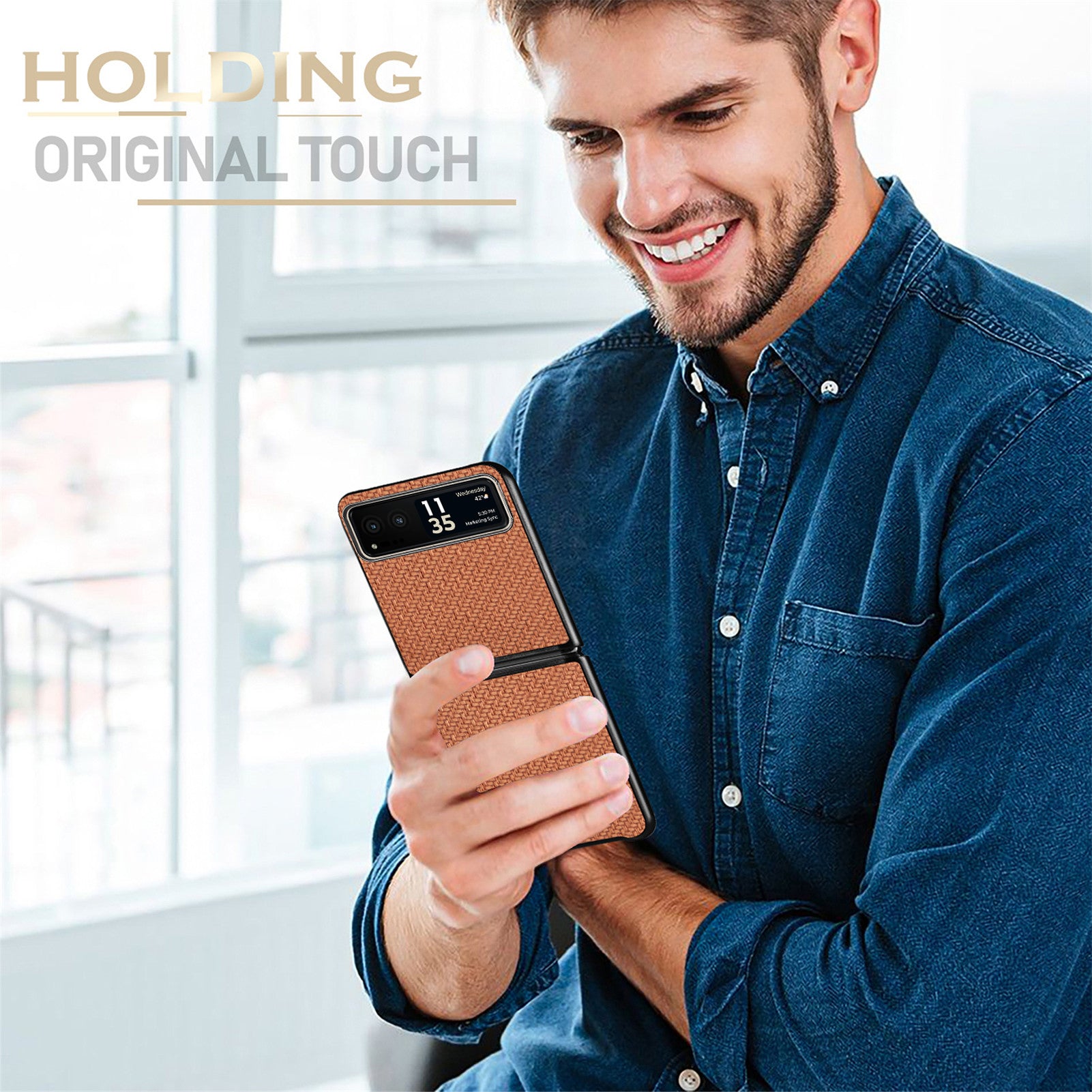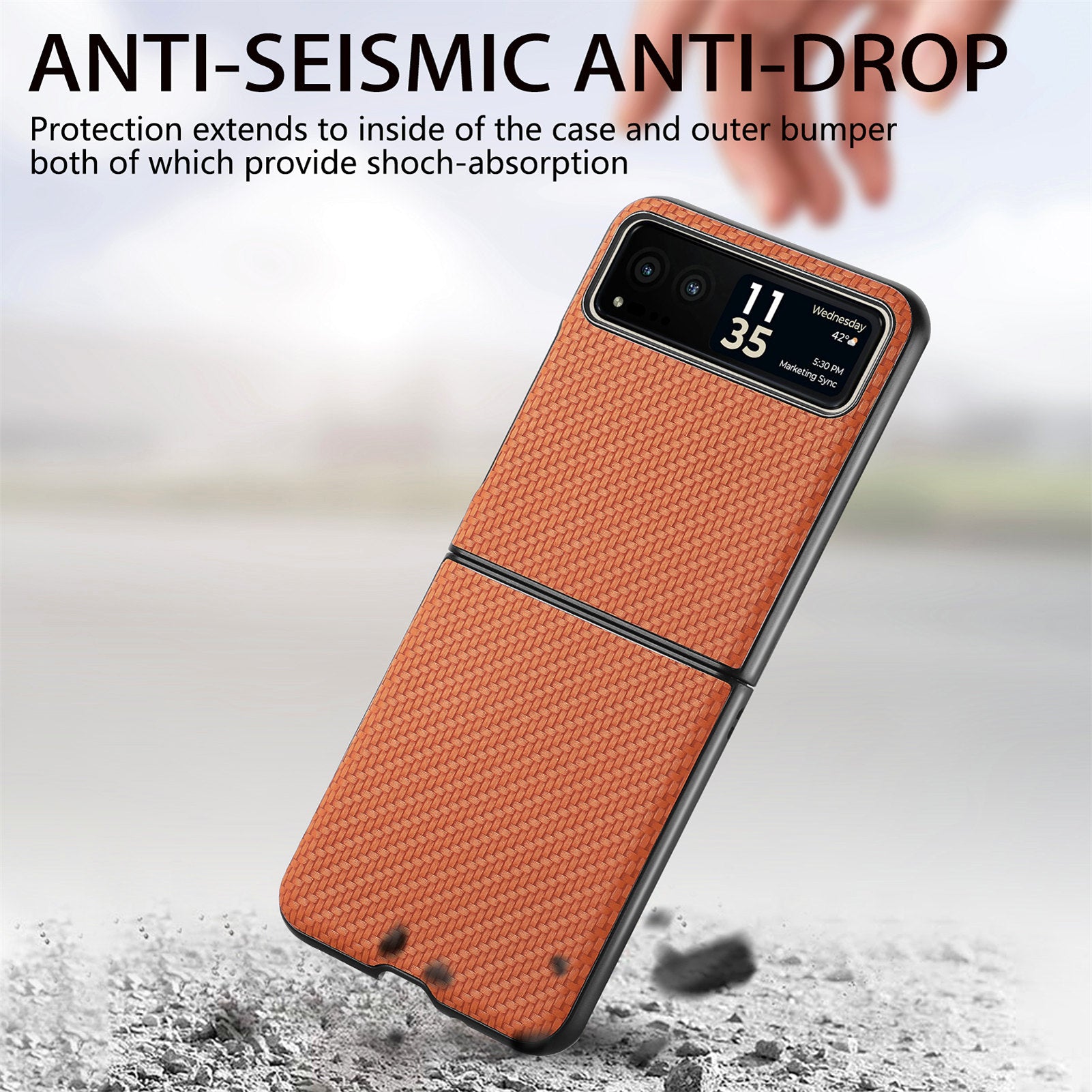 - Carbon fiber texture PU leather + PC phone case, durable to use