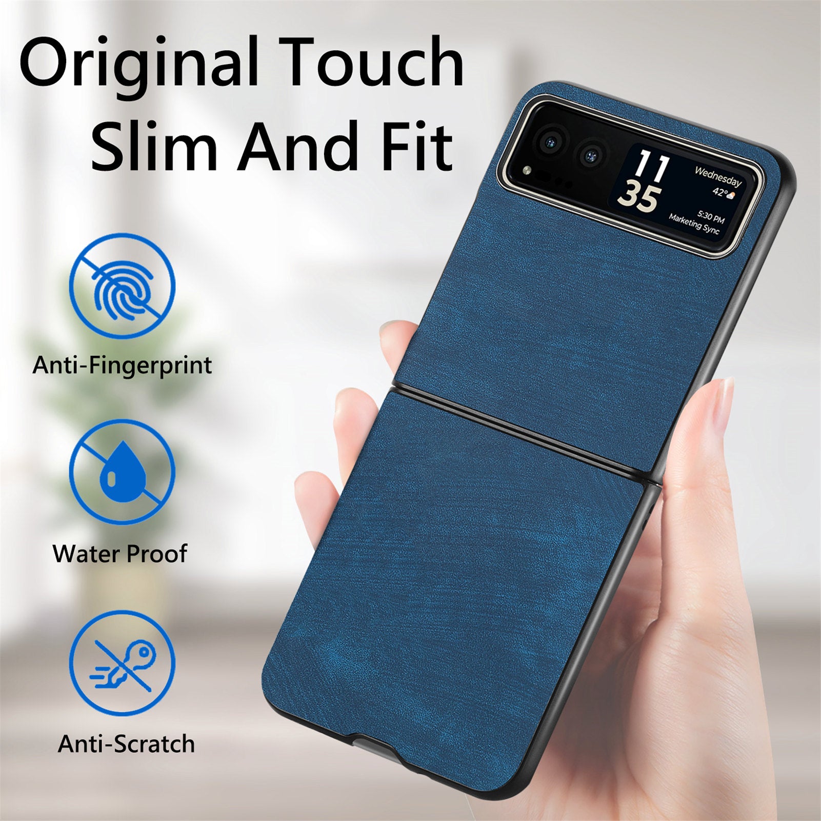 Uniqkart for Motorola Razr 40 5G Phone Case PU Leather Coated PC Case Skin-Touch Protective Cover - Dark Blue