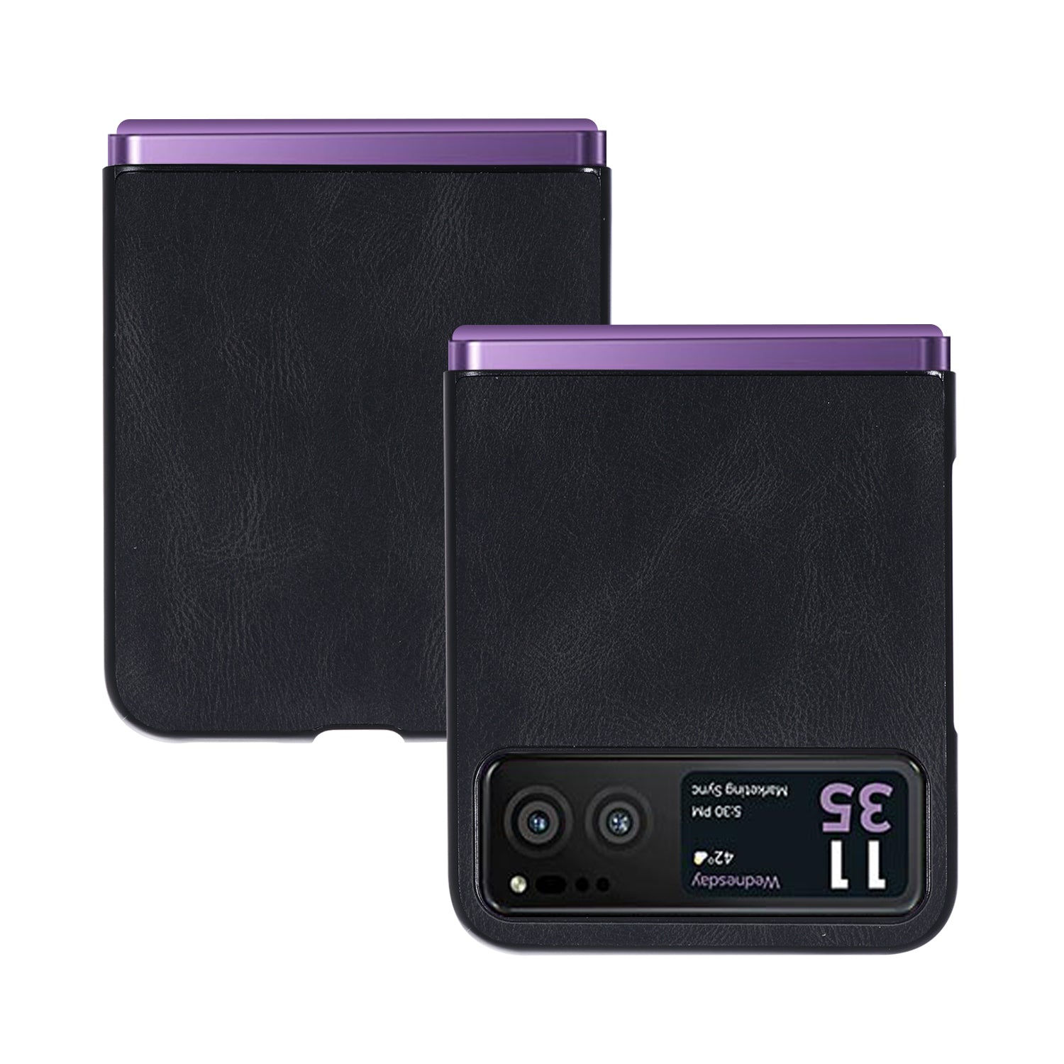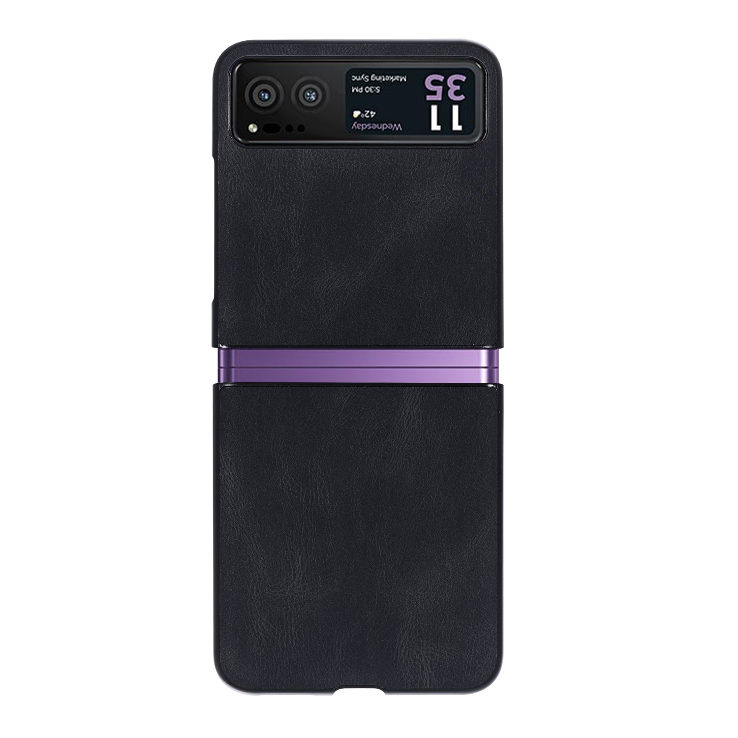 Uniqkart for Motorola Razr 40 5G PU Leather + Hard PC Shell Retro Texture Shockproof Phone Cover - Black