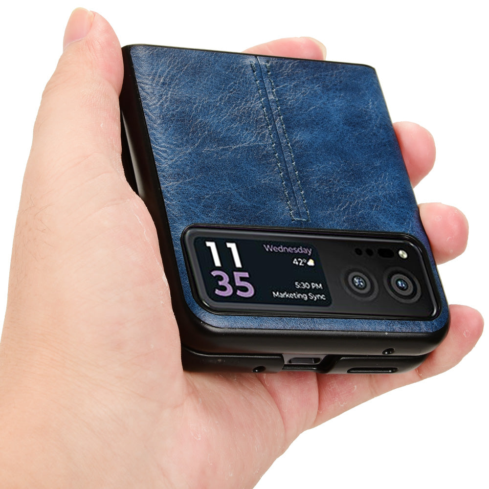 Uniqkart for Motorola Razr 40 5G Stitching Line Back Cover PU Leather + Hard PC Protective Phone Case - Blue