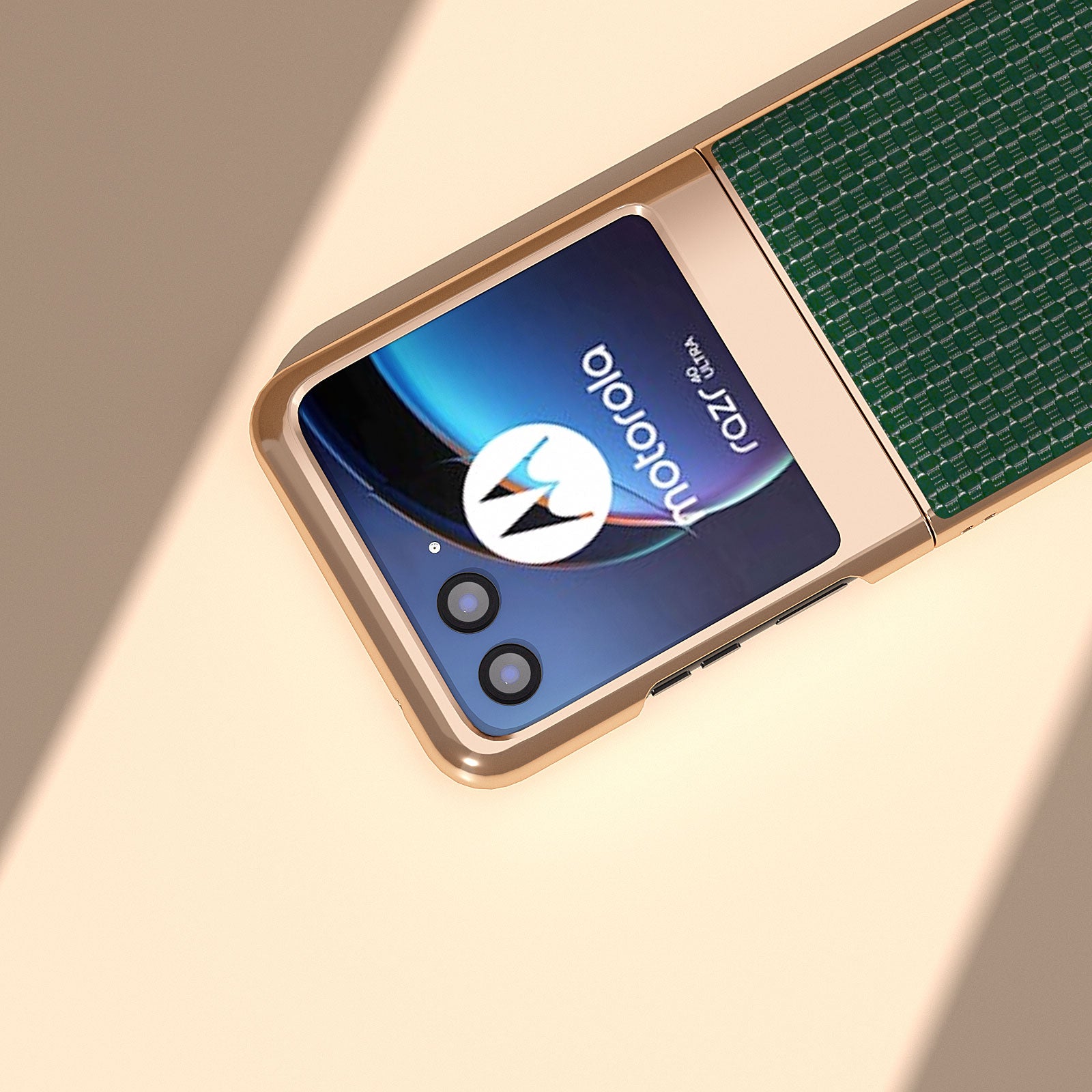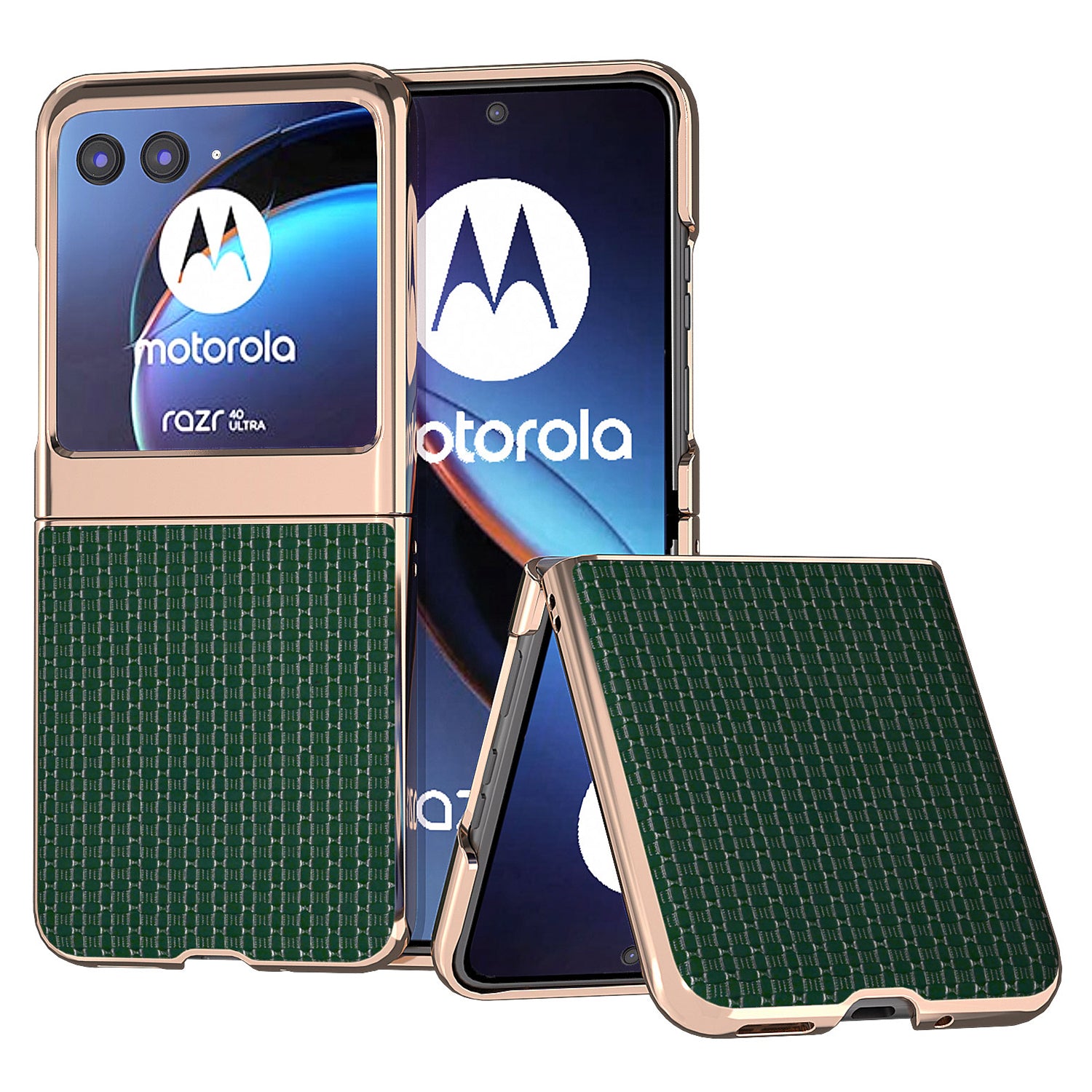 for Motorola Razr 40 Ultra 5G Electroplating Genuine Cow Leather + PC Case Luxury Texture Phone Cover - Green