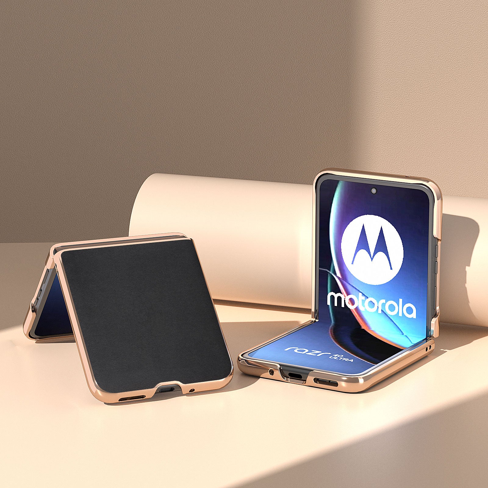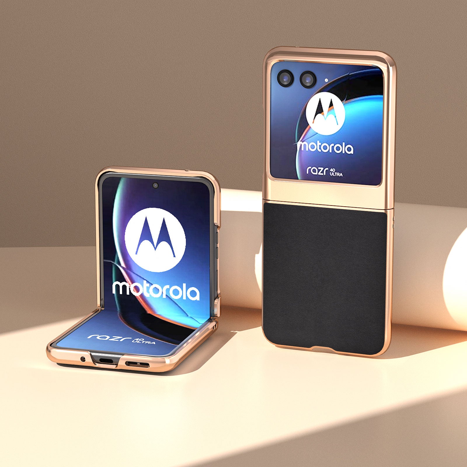 Uniqkart for Motorola Razr 40 Ultra 5G Electroplating Nappa Texture Case Genuine Cow Leather Coated PC Phone Cover - Black