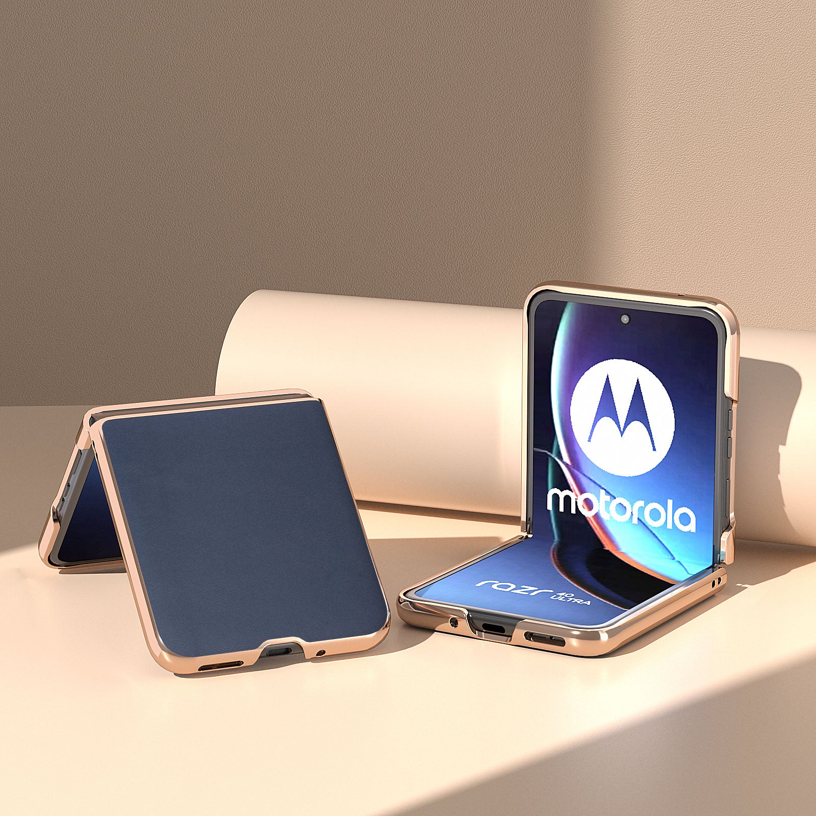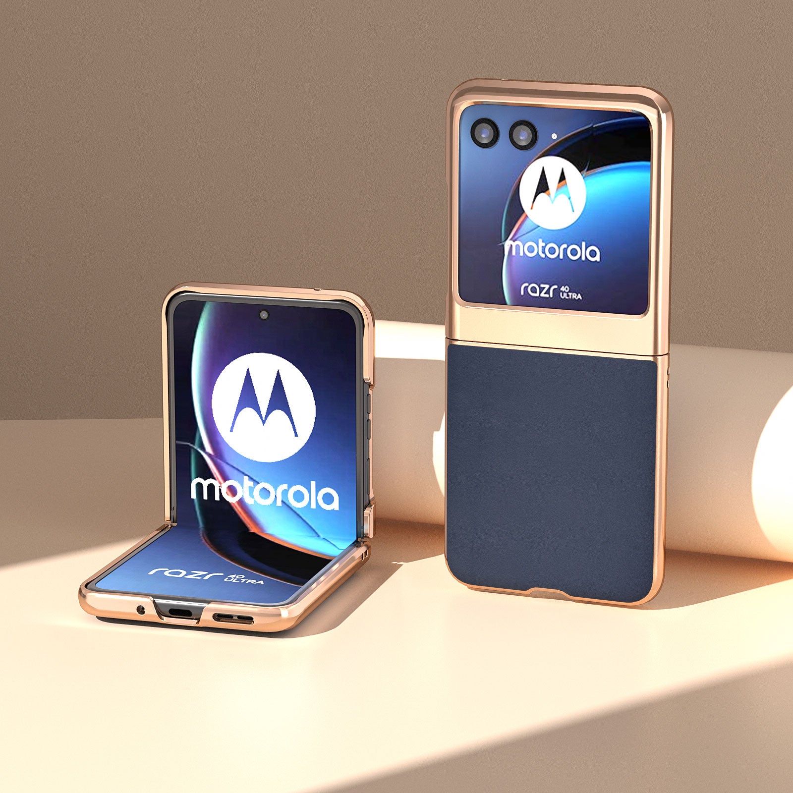 Uniqkart for Motorola Razr 40 Ultra 5G Electroplating Nappa Texture Case Genuine Cow Leather Coated PC Phone Cover - Blue
