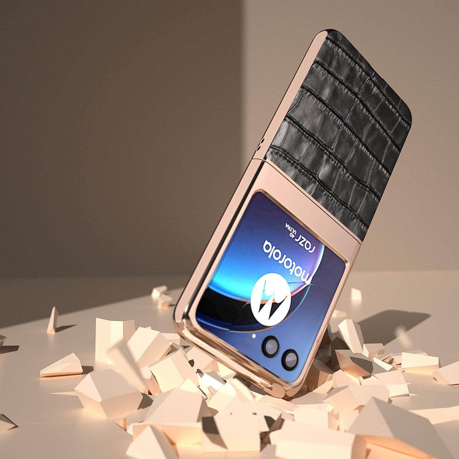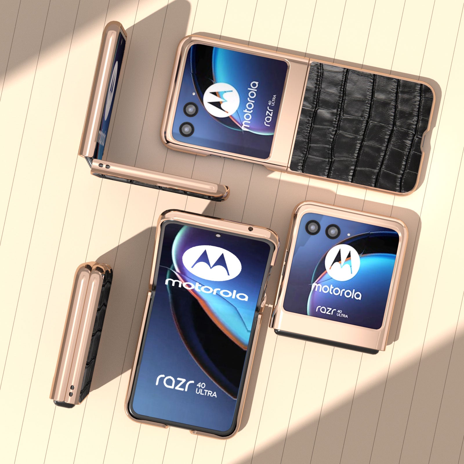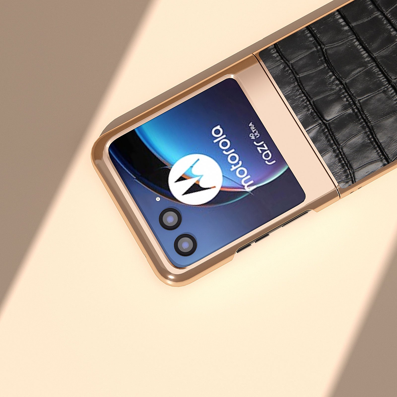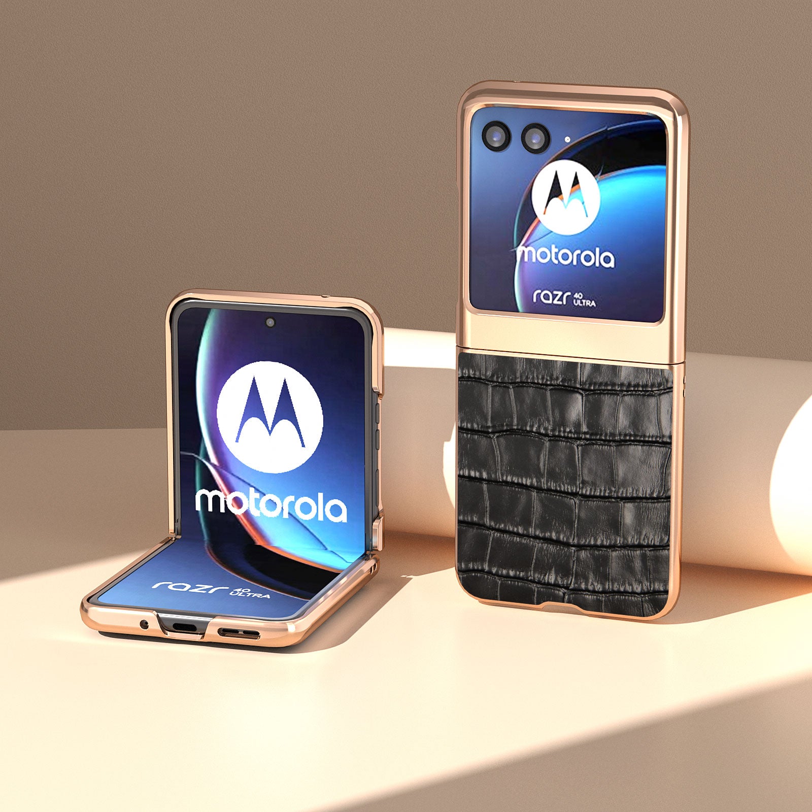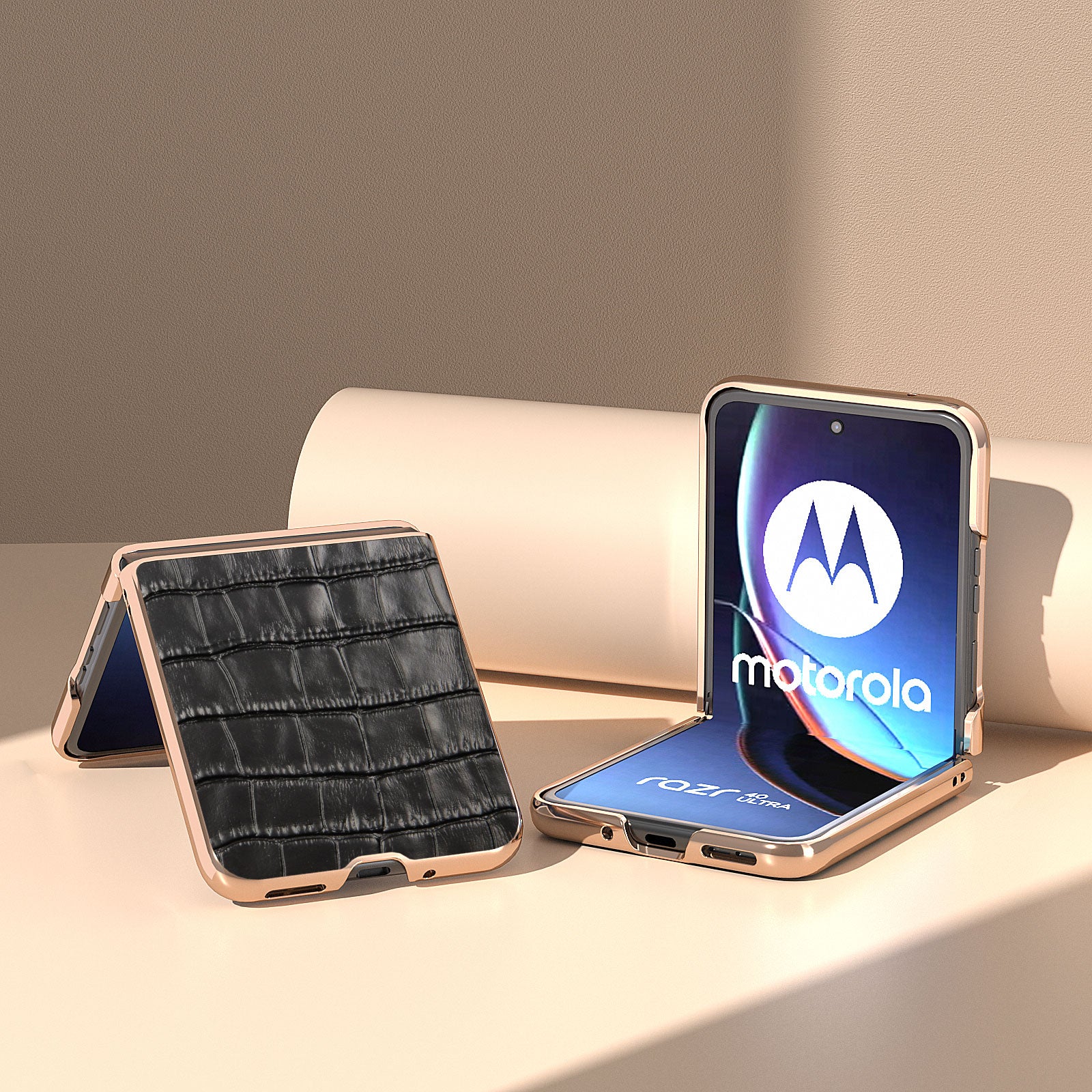 Uniqkart for Motorola Razr 40 Ultra 5G Genuine Cow Leather + PC Anti-Drop Cover Crocodile Texture Nano Electroplating Phone Case - Black