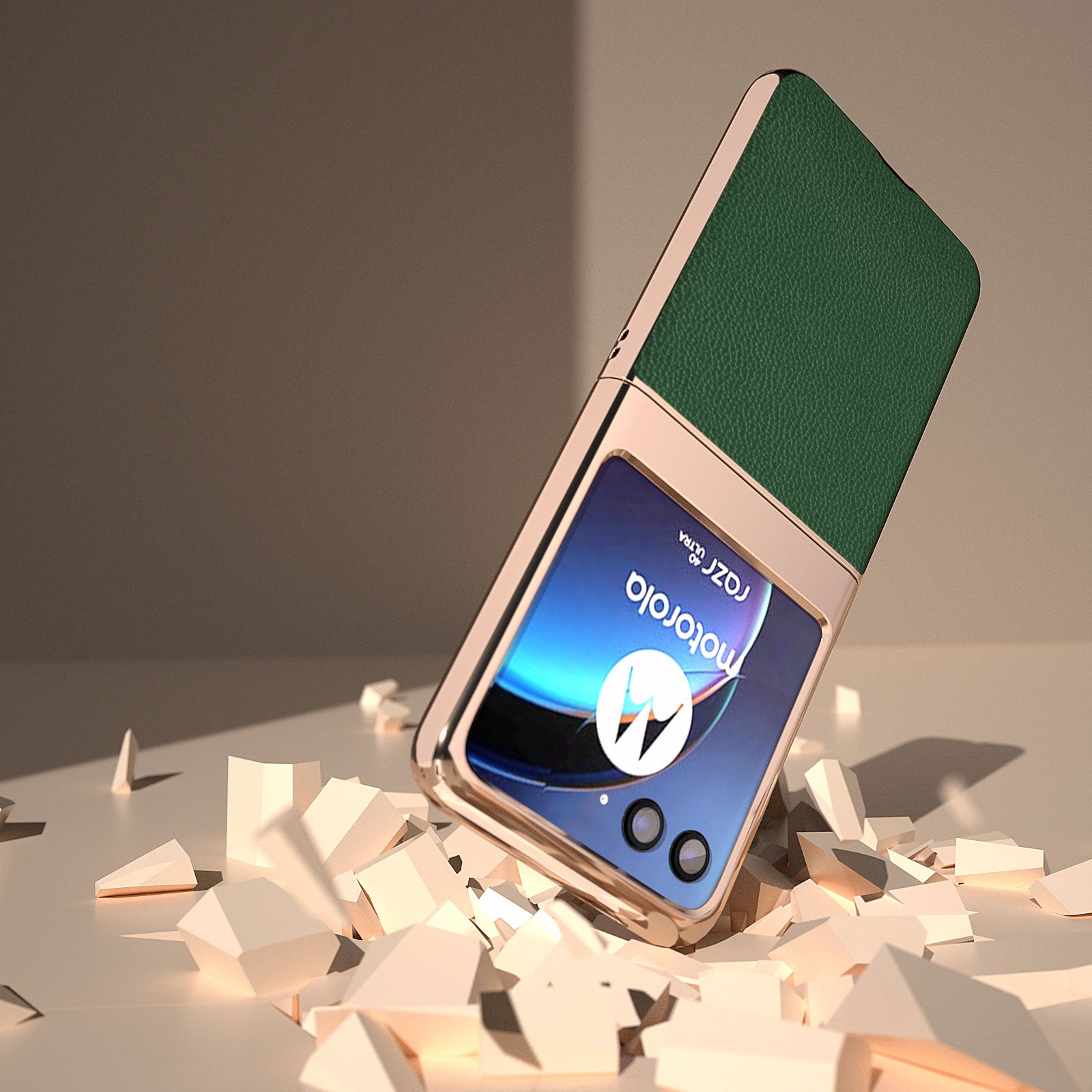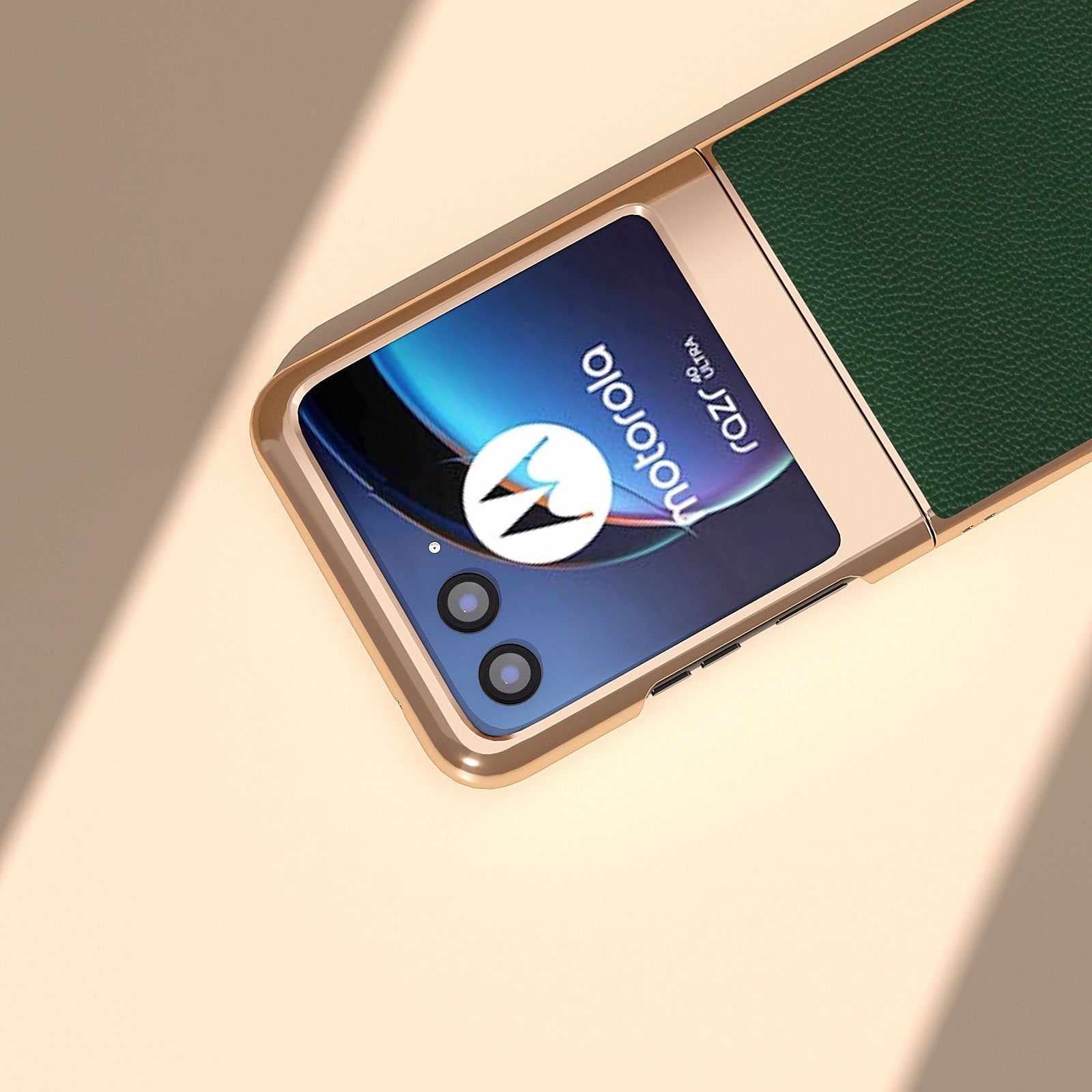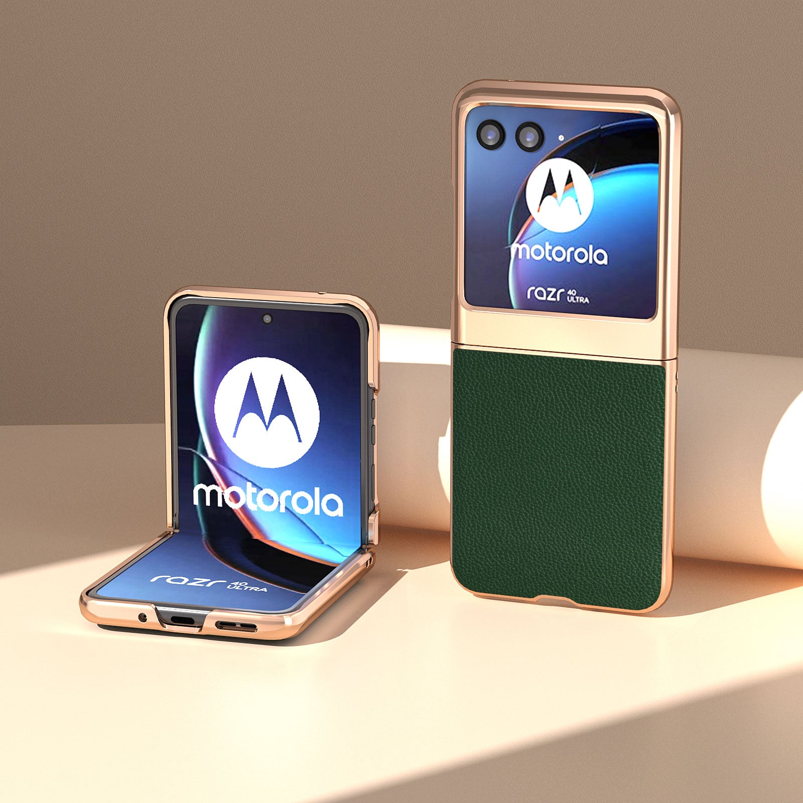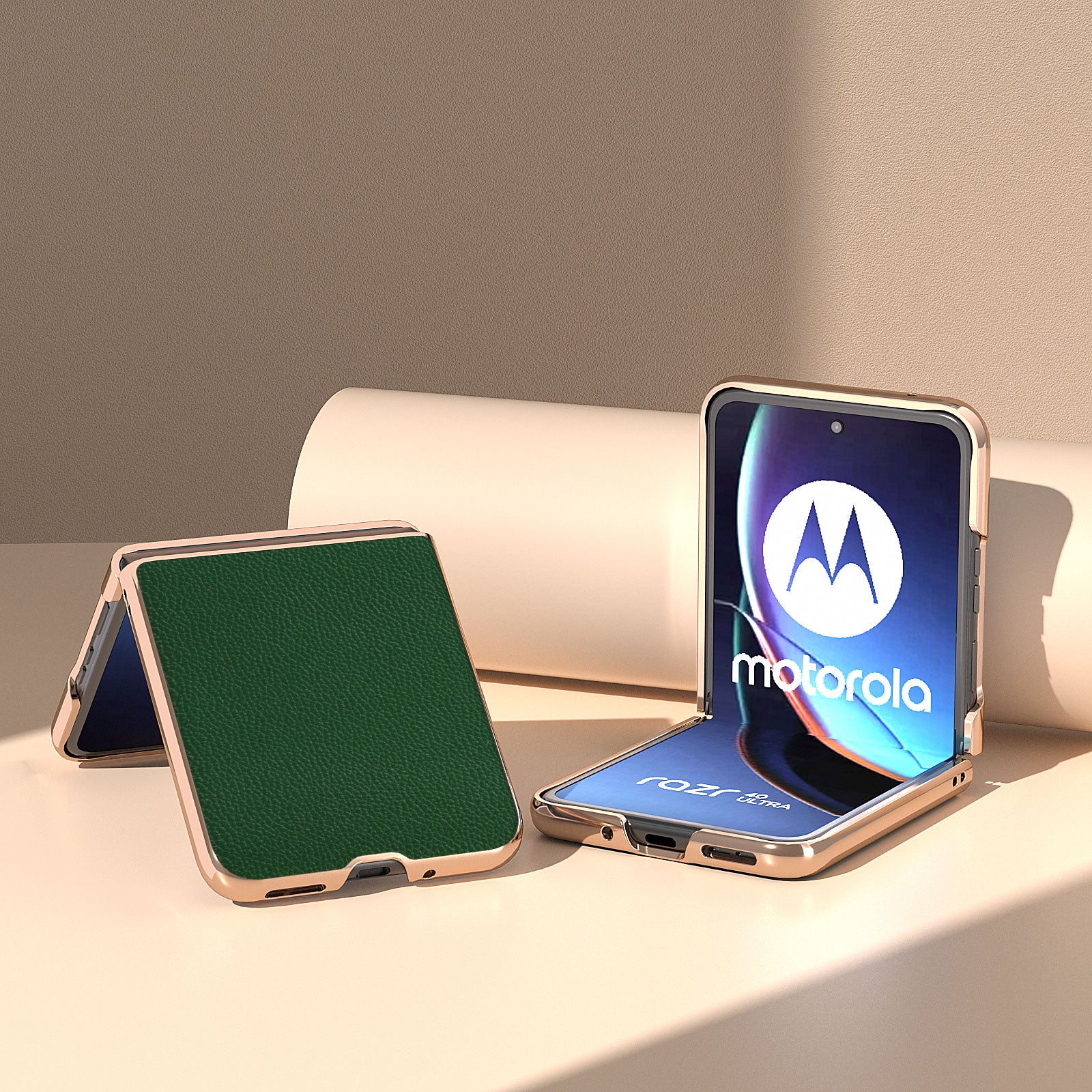 Uniqkart for Motorola Razr 40 Ultra 5G Litchi Texture Back Cover Genuine Cow Leather + PC Nano Electroplating Phone Case - Green