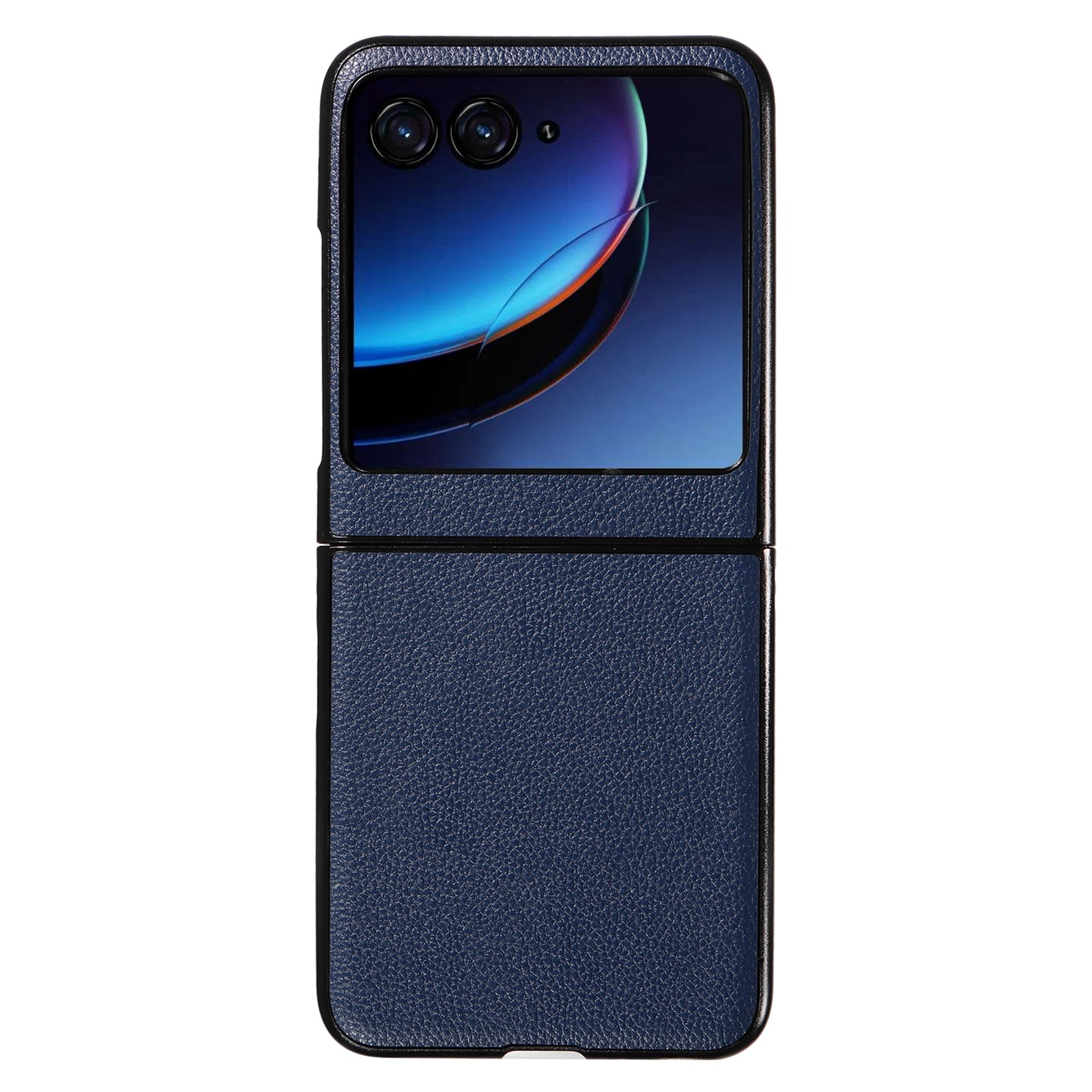 Uniqkart for Motorola Razr 40 Ultra 5G Litchi Texture Phone Case Shockproof Slim PU+PC Cover - Dark Blue