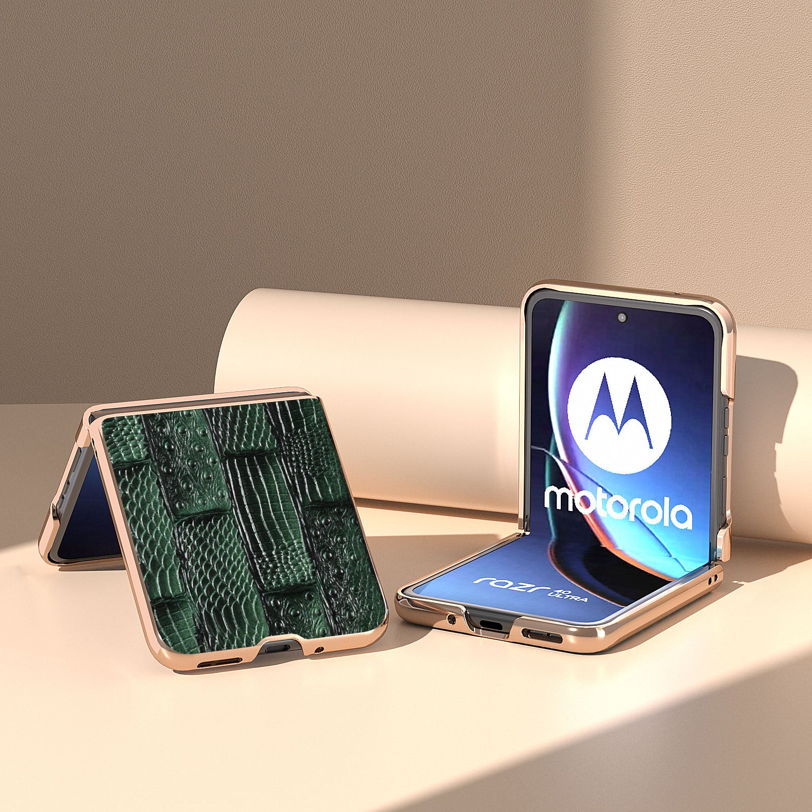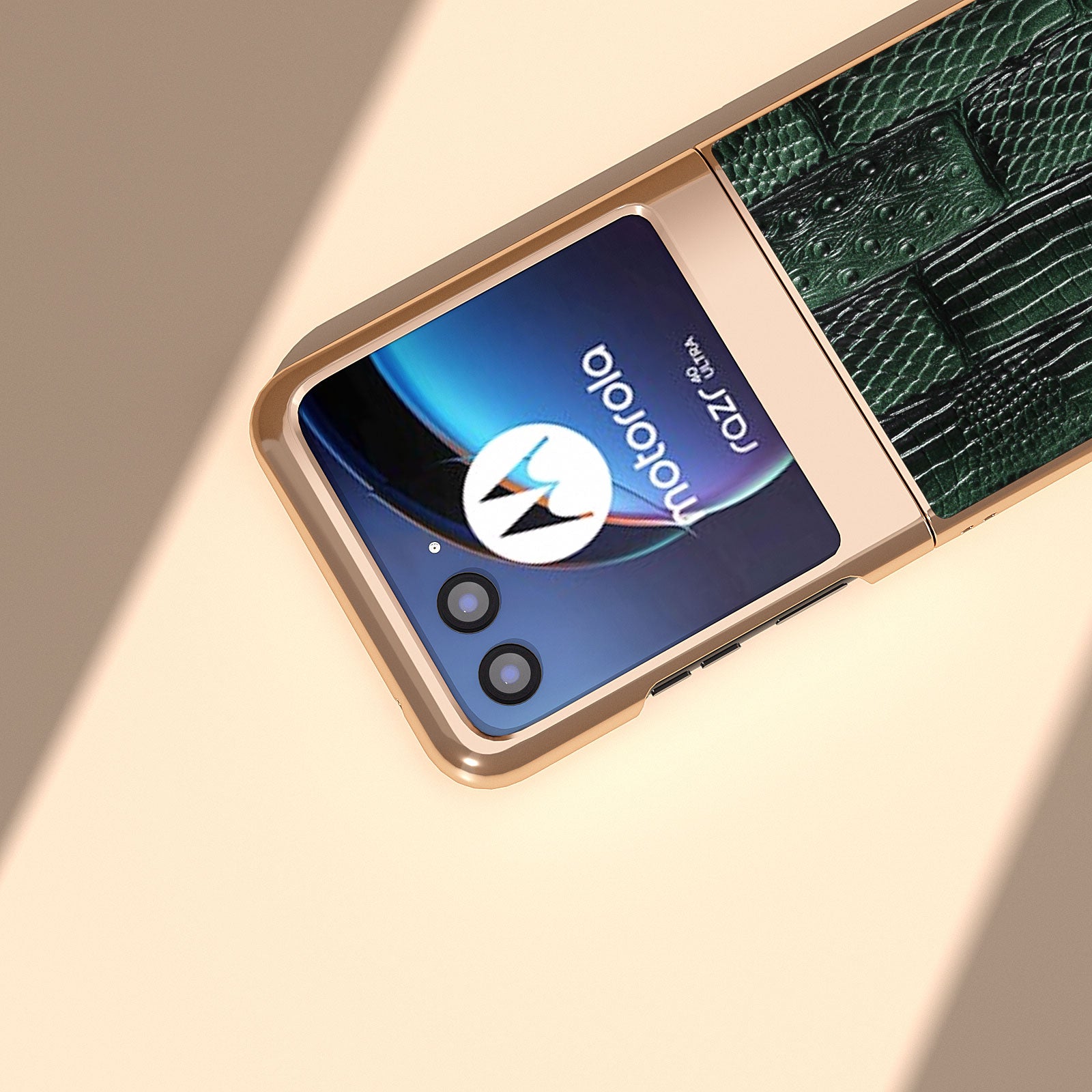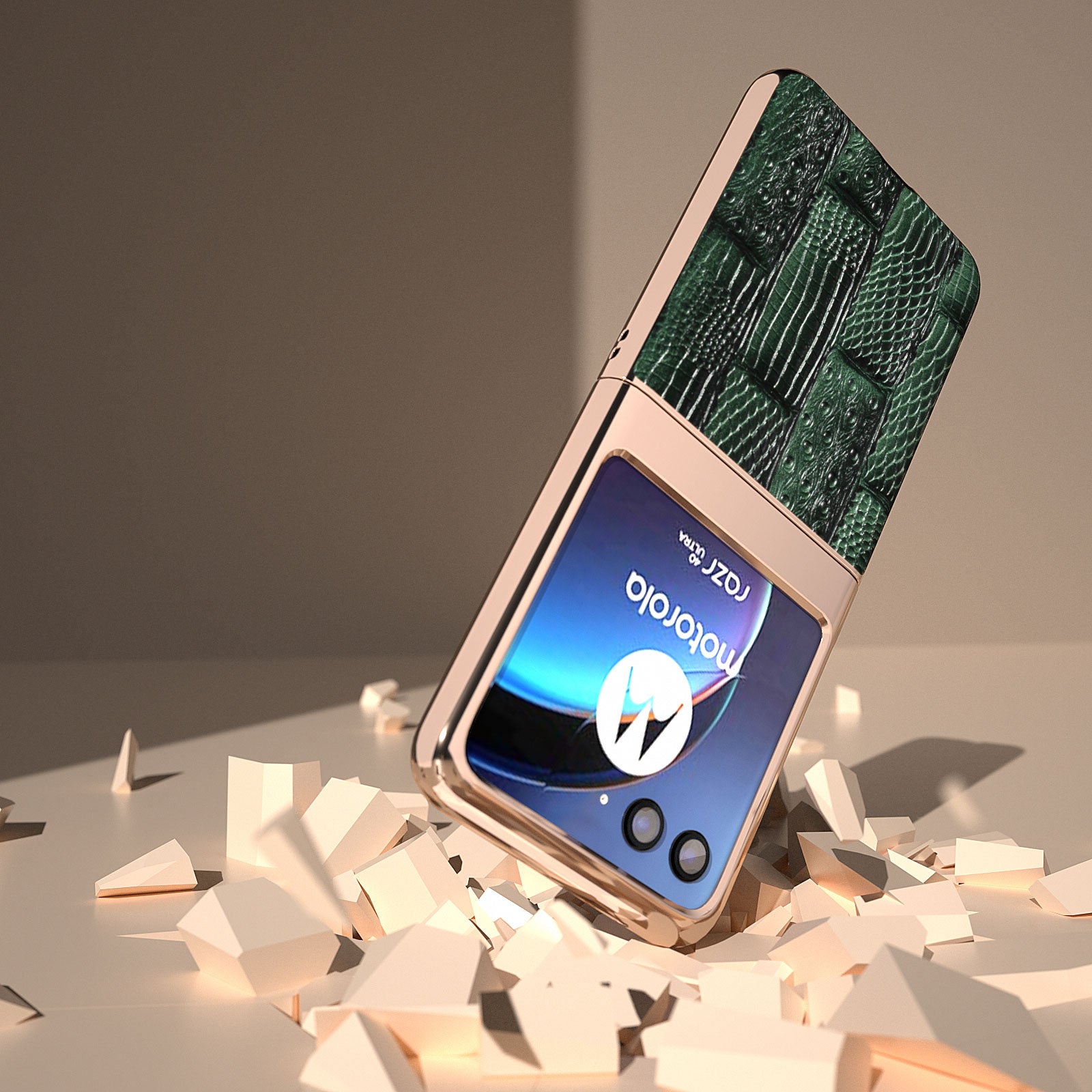 Uniqkart for Motorola Razr 40 Ultra 5G Mahjong Texture Genuine Cow Leather+PC Phone Case Nano Electroplating Phone Cover - Green