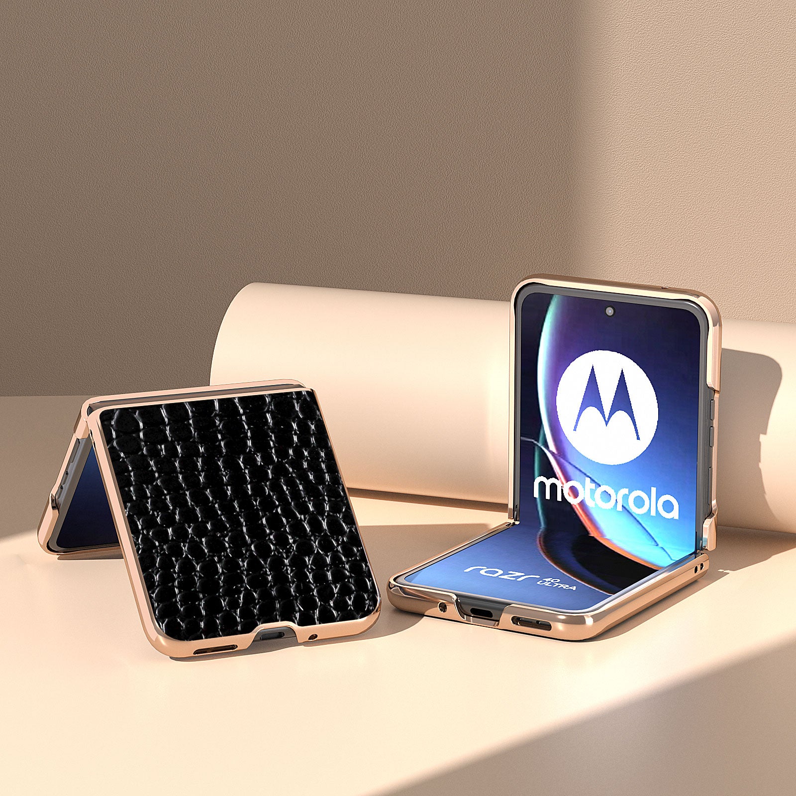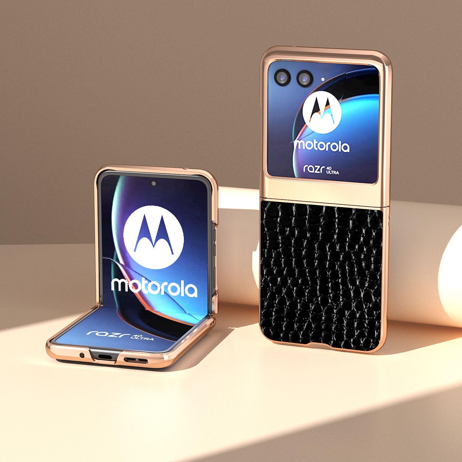 Uniqkart for Motorola Razr 40 Ultra 5G Nano Electroplating Phone Case Genuine Cow Leather Coated PC Crocodile Texture Cover - Black