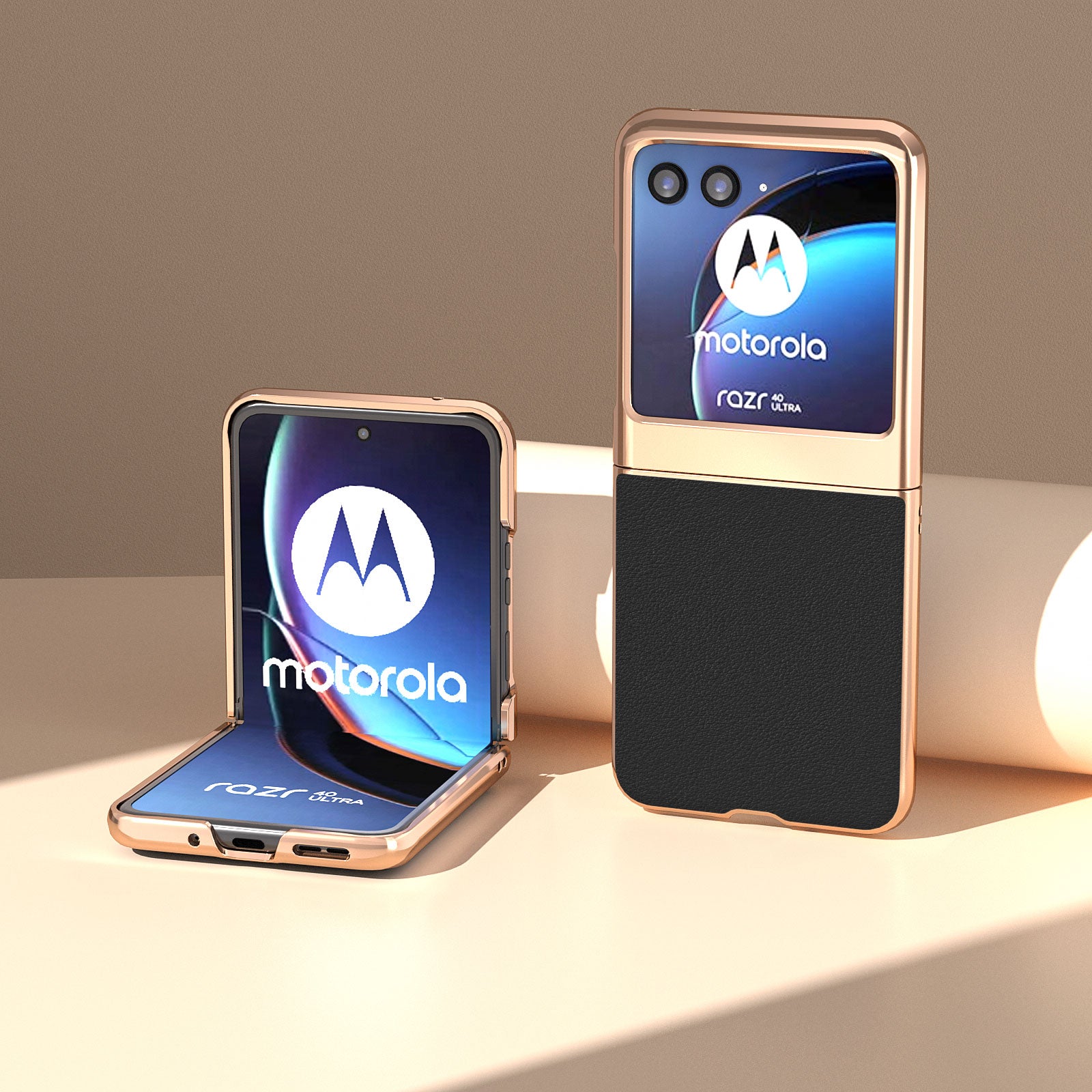 Uniqkart for Motorola Razr 40 Ultra 5G Nano Electroplating Phone Case Genuine Cow Leather+PC Phone Cover - Black