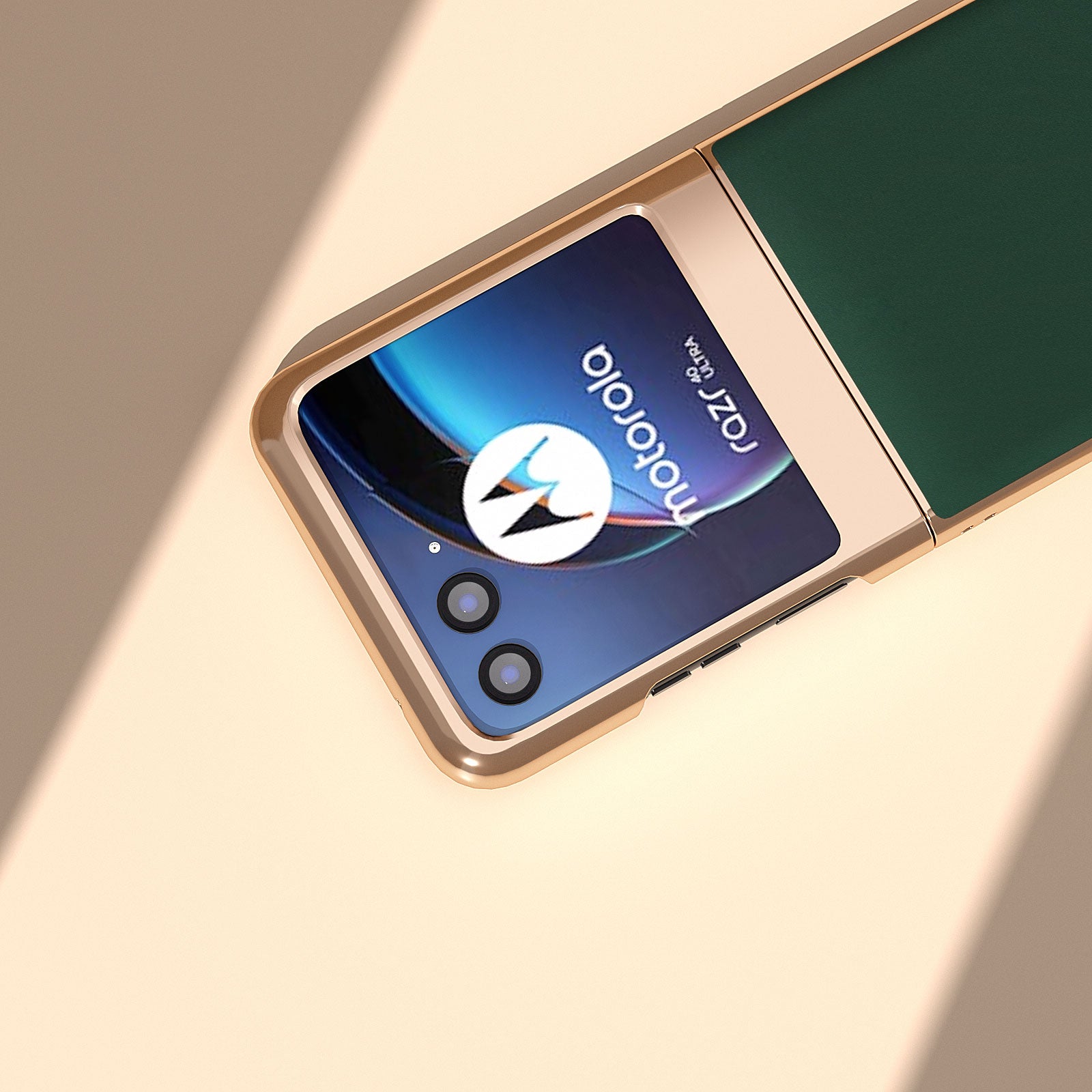 Uniqkart for Motorola Razr 40 Ultra 5G Nano Electroplating Phone Case Genuine Cow Leather + PC Silky Feeling Cover - Green