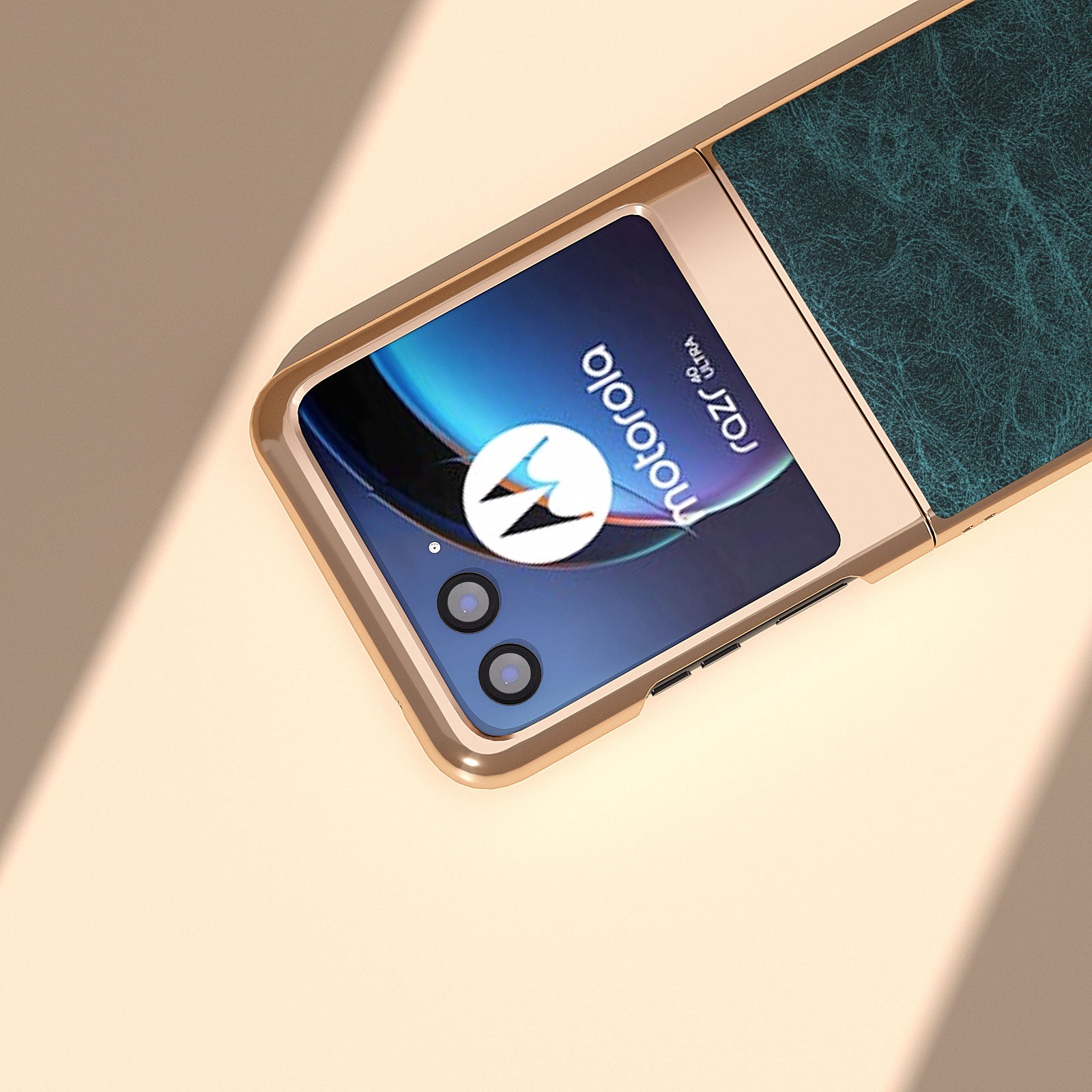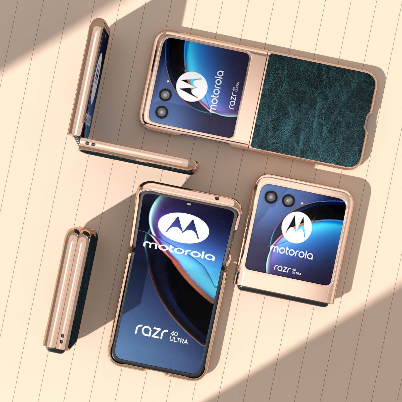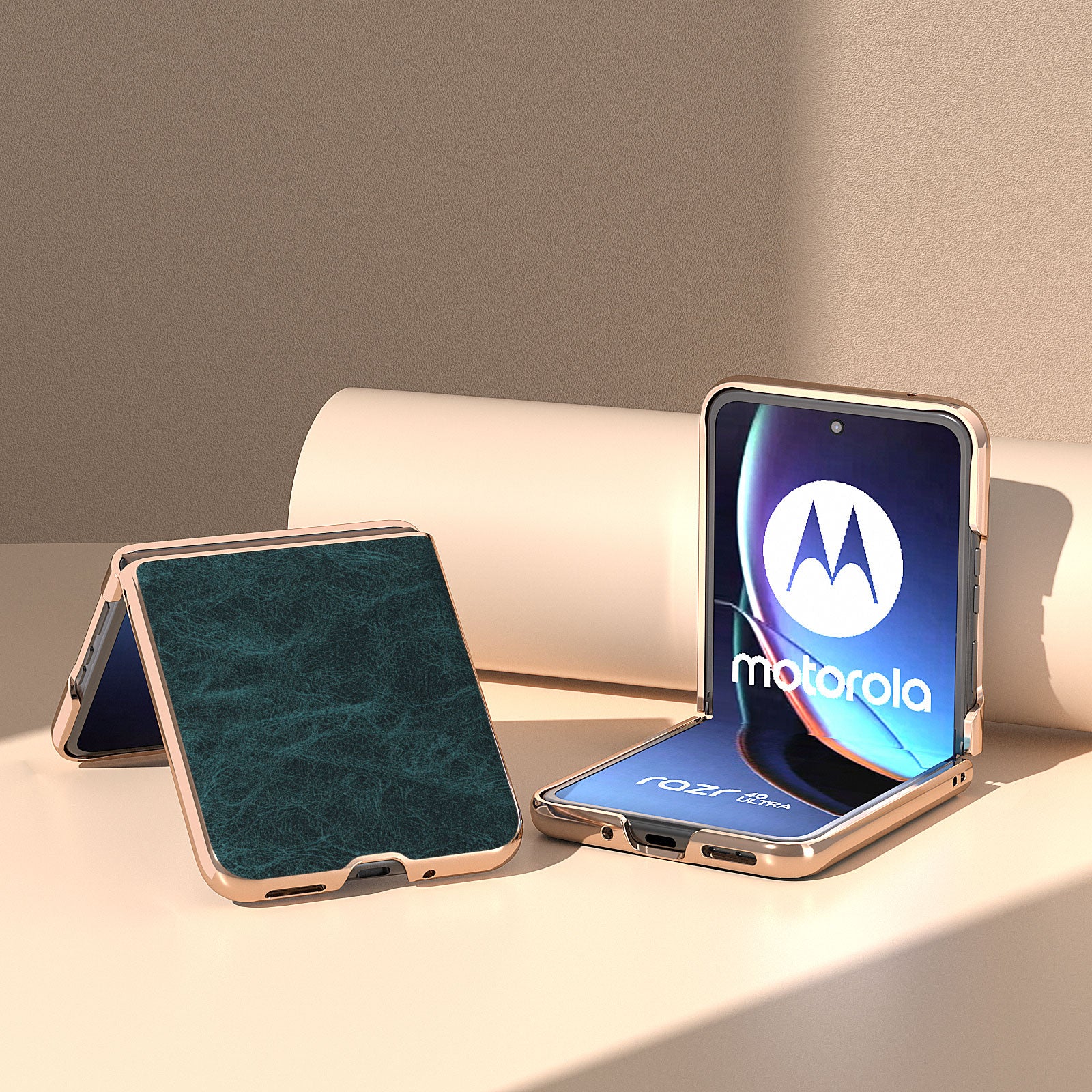 Uniqkart for Motorola Razr 40 Ultra 5G Phone Case Electroplating PU Leather + PC Litchi Texture Cover - Blue
