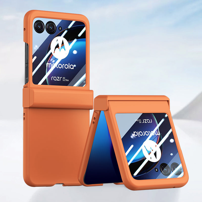 Uniqkart for Motorola Razr 40 Ultra 5G Phone Case Hinge Design PC Cover with Tempered Glass Rear Screen Protector - Orange