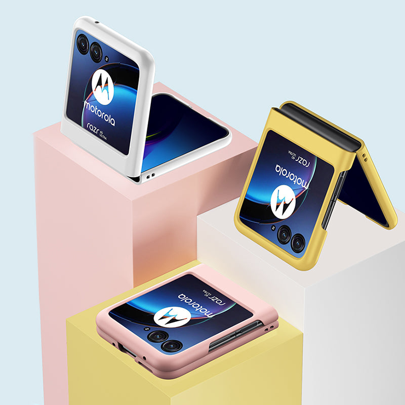 for Motorola Razr 40 Ultra 5G Phone Case Skin-touch PC Cover with Tempered Glass Rear Screen Protector - Yellow