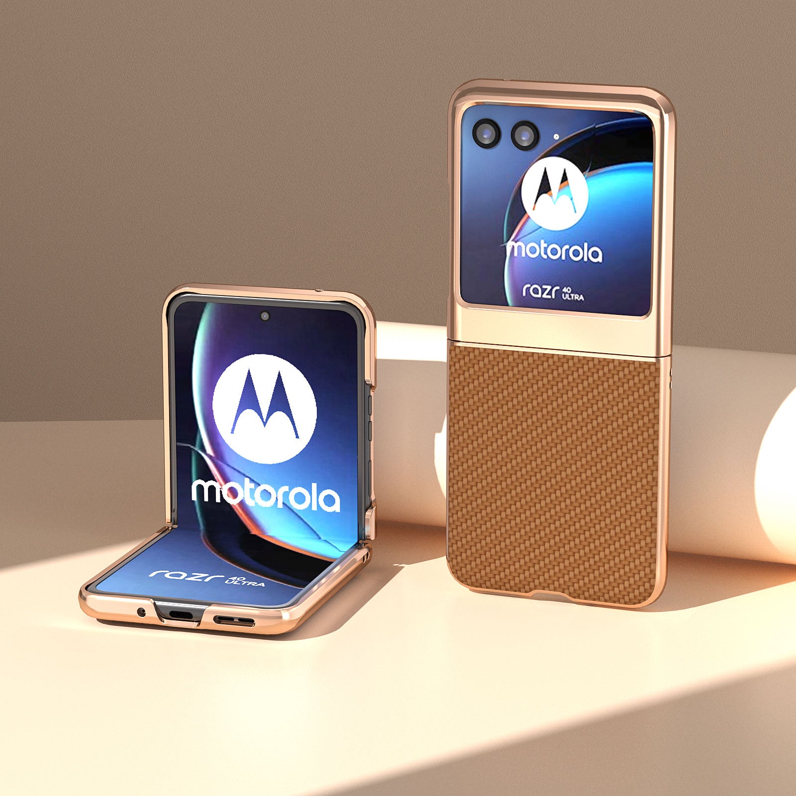 for Motorola Razr 40 Ultra 5G PU Leather + PC Electroplating Case Carbon Fiber Texture Phone Cover - Light Brown