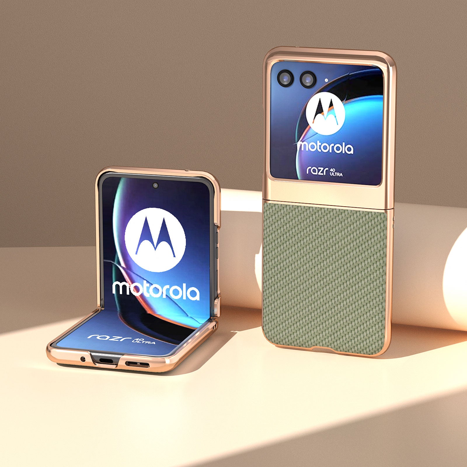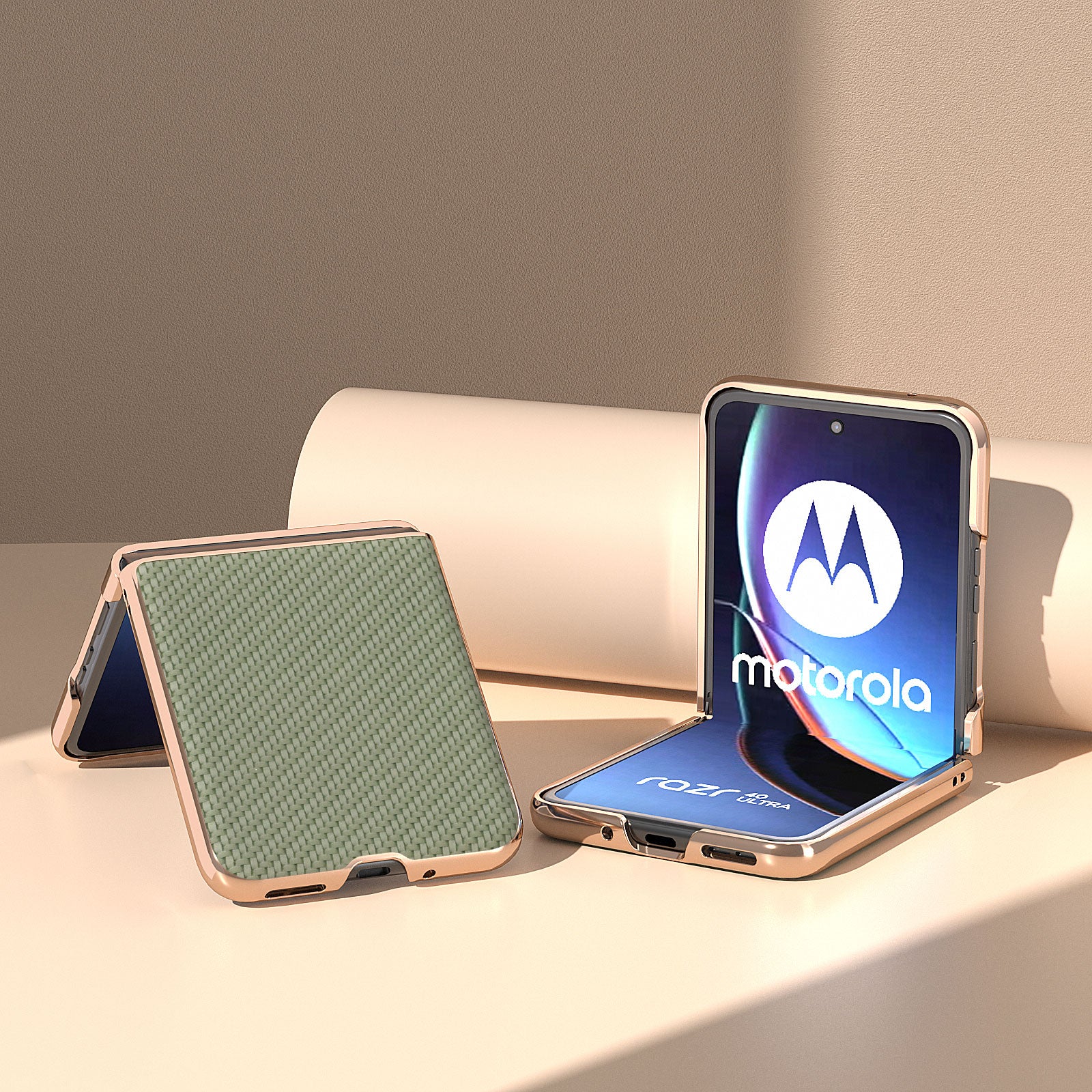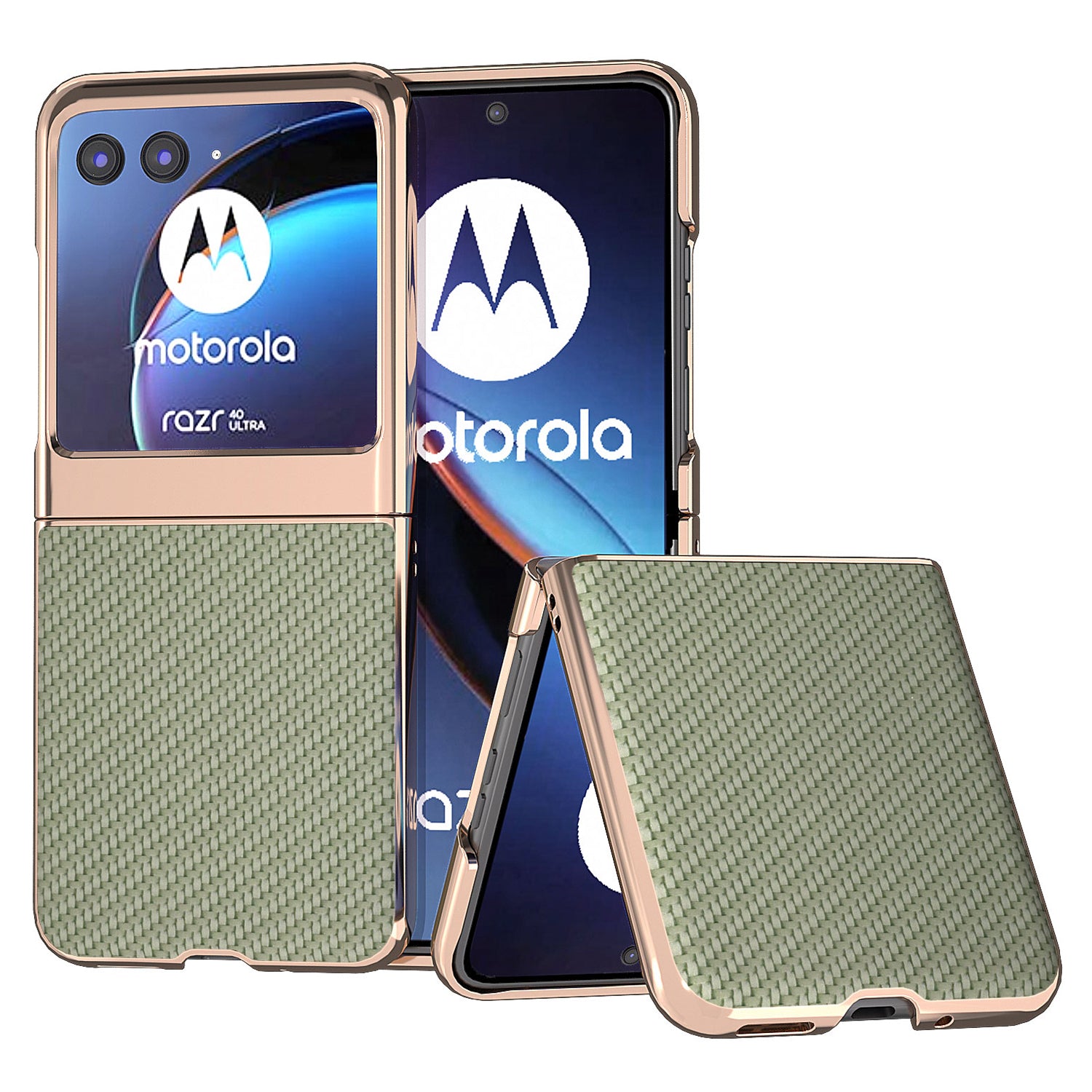 for Motorola Razr 40 Ultra 5G PU Leather + PC Electroplating Case Carbon Fiber Texture Phone Cover - Light Green