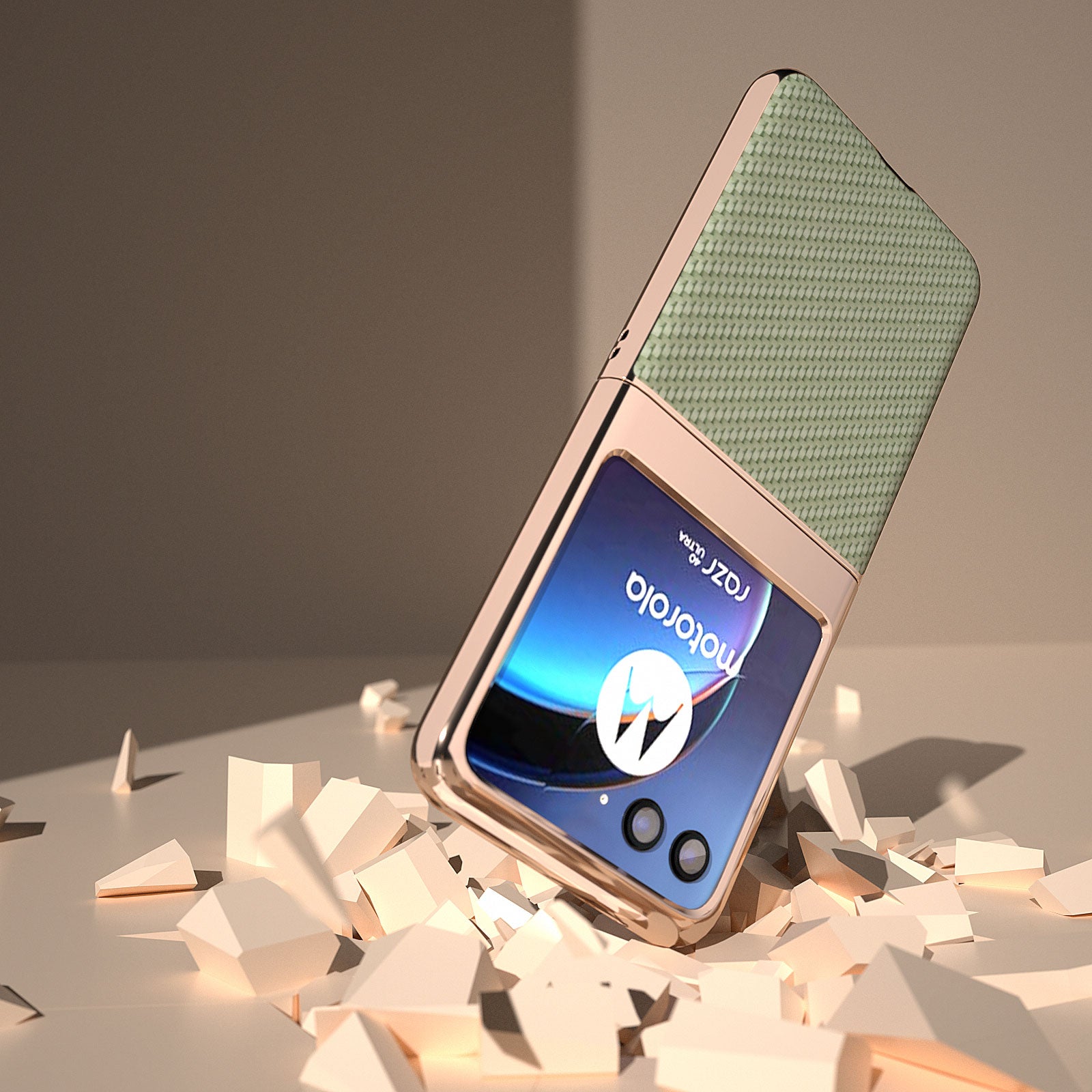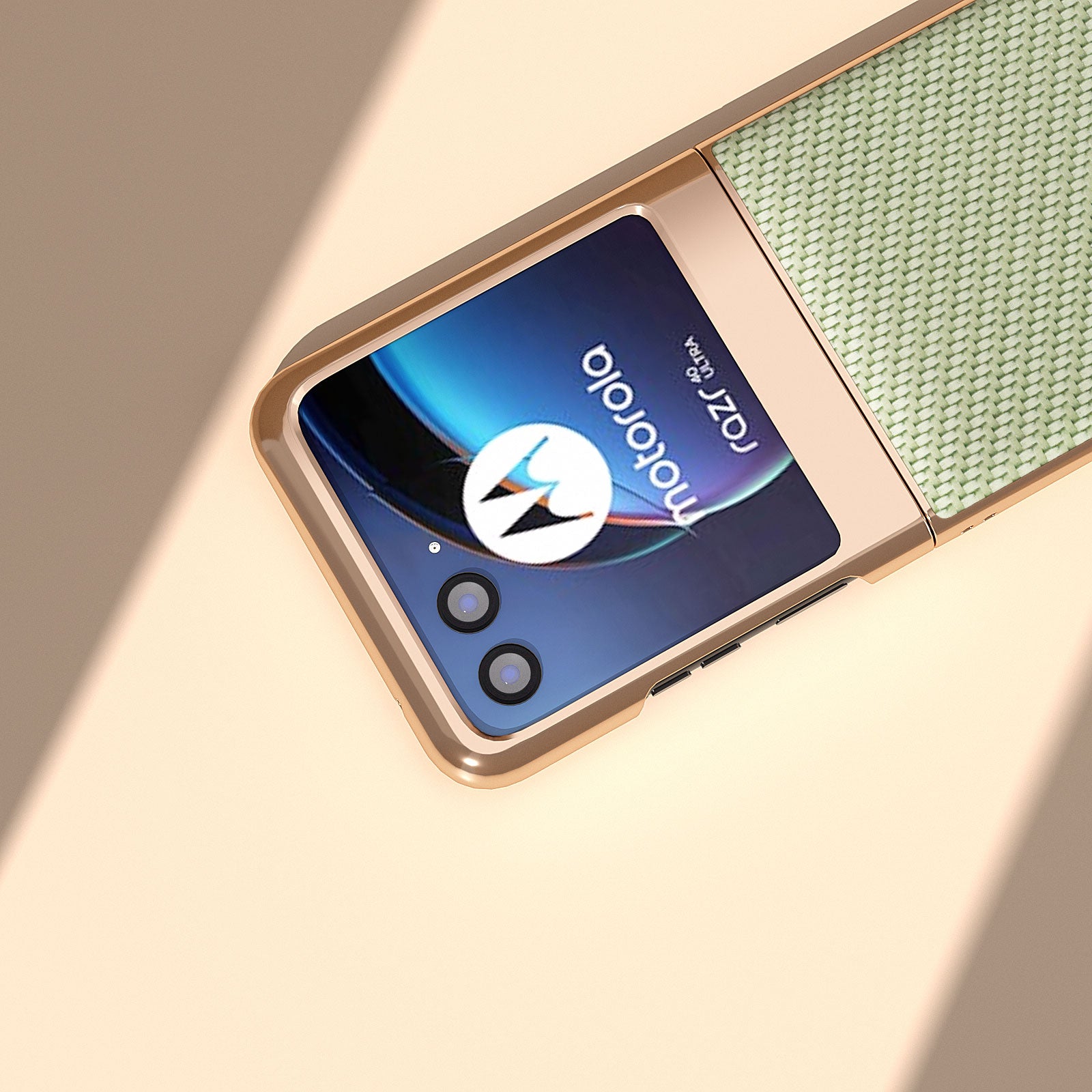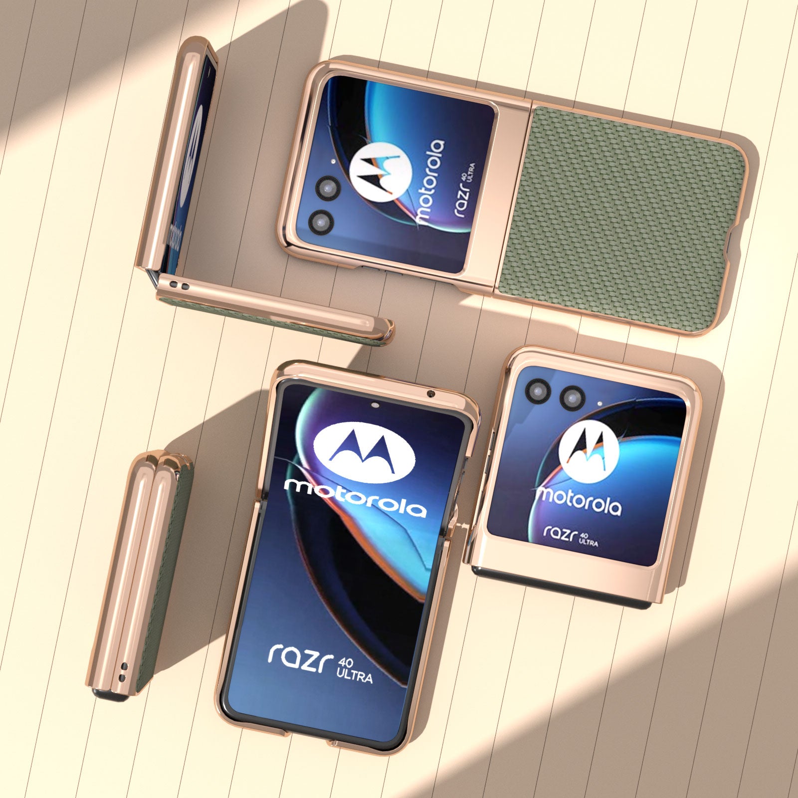 for Motorola Razr 40 Ultra 5G PU Leather + PC Electroplating Case Carbon Fiber Texture Phone Cover - Light Green