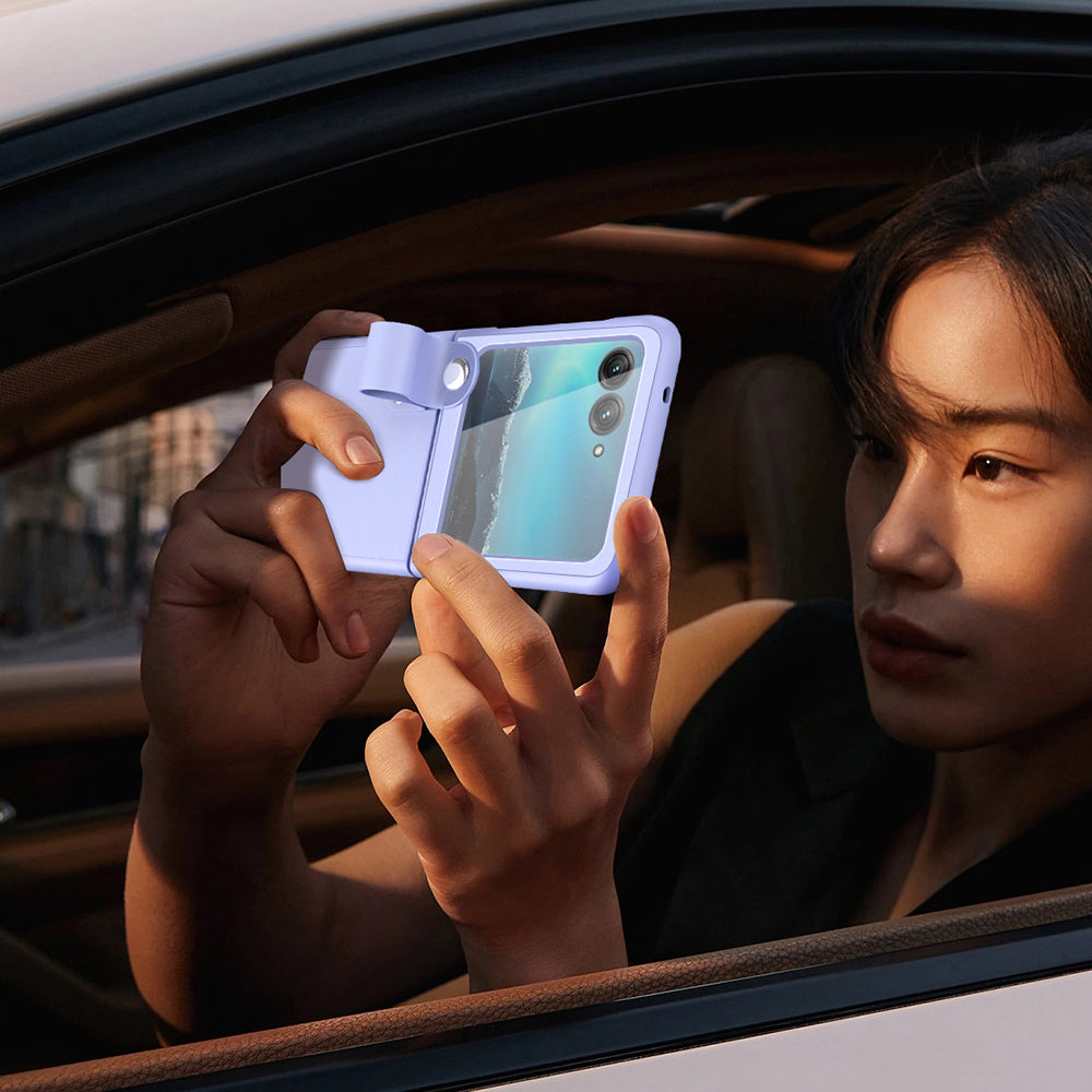 Uniqkart for Motorola Razr 40 Ultra 5G PU Leather + PC Phone Case Finger Strap Kickstand Cover - Purple