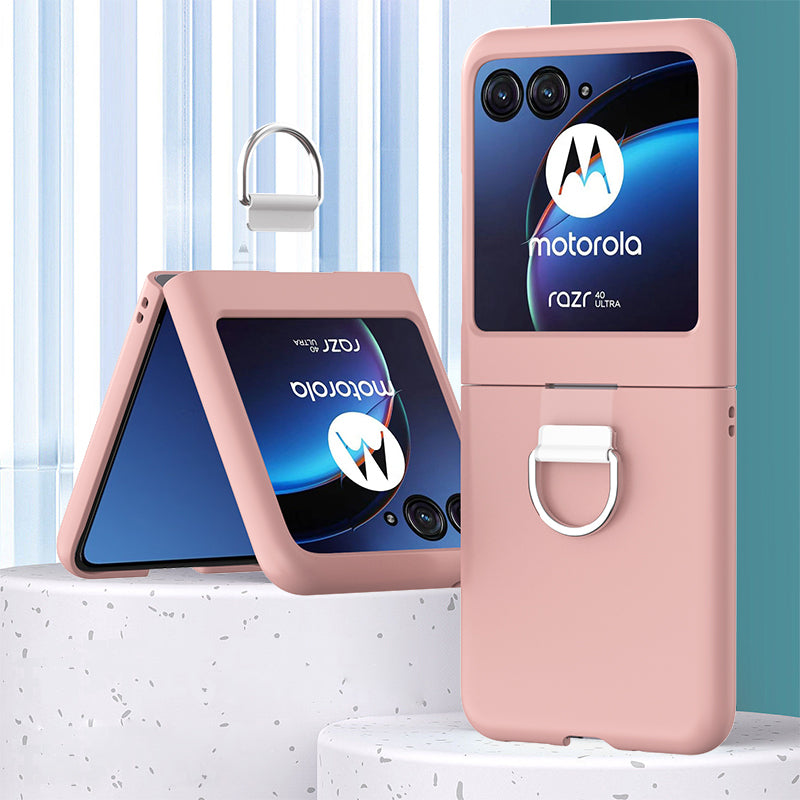 Uniqkart for Motorola Razr 40 Ultra 5G Skin-touch Phone Case Anti-Scratch Hard PC Cover with Metal Ring Holder - Pink