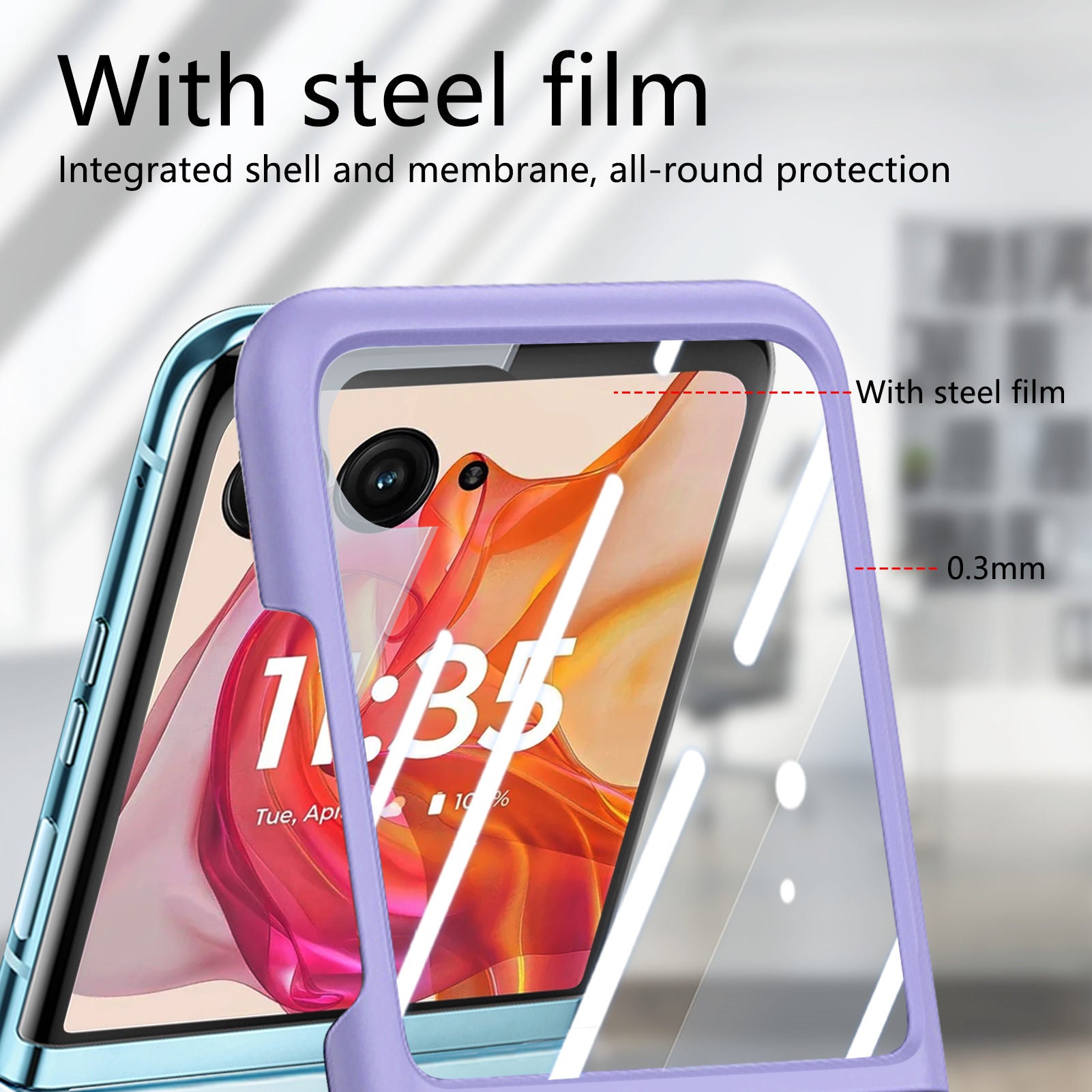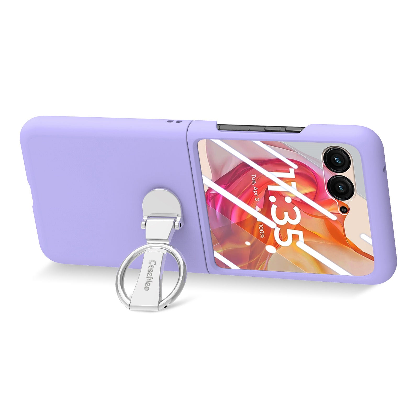 For Motorola Razr 50 Ultra 5G Case Ring Kickstand PC Phone Cover with Tempered Glass Rear Screen Film - Purple