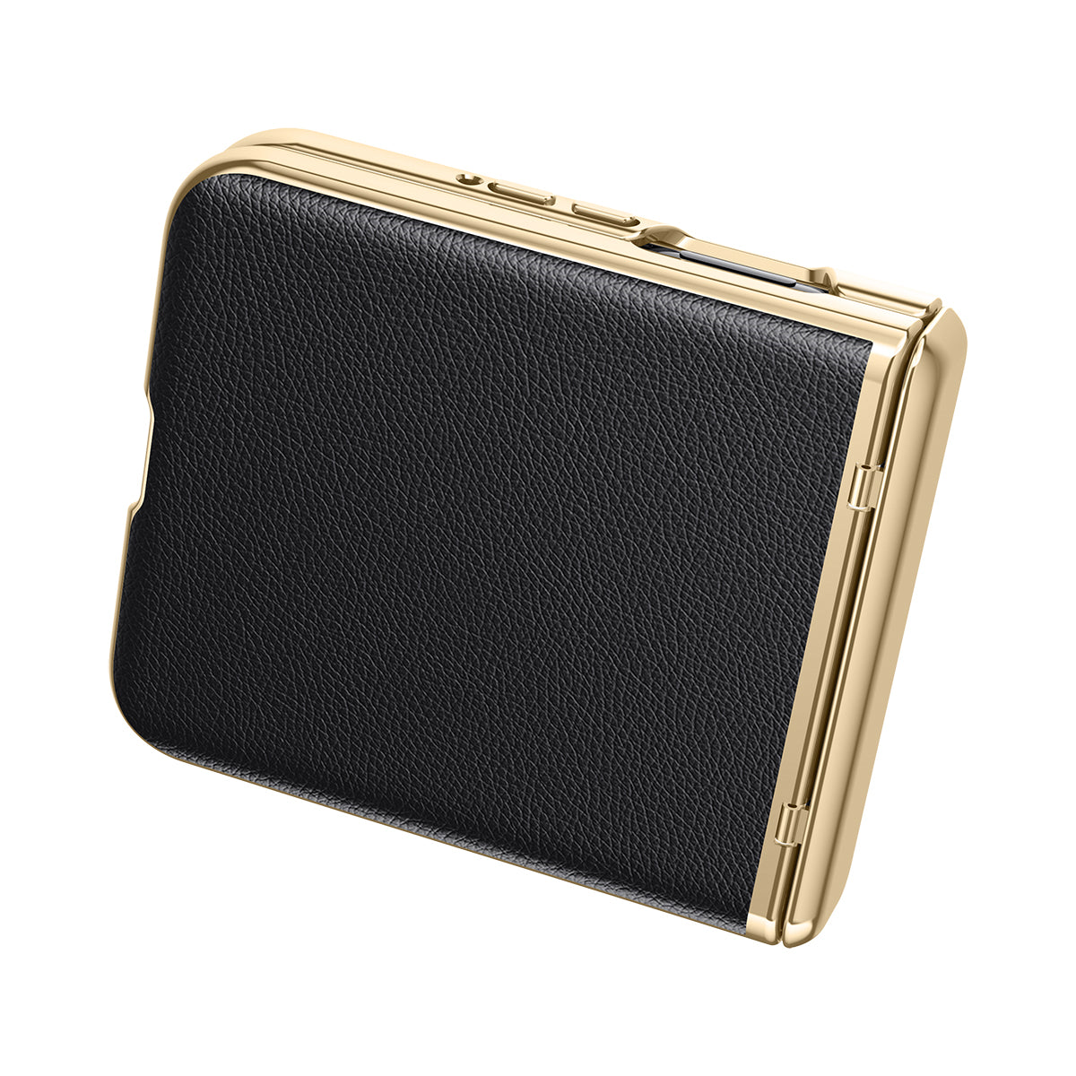 For Motorola Razr 50 Ultra 5G Case with Rear Small Screen Protector Hinge Protection Leather Back Cover Electroplated Edge - Black