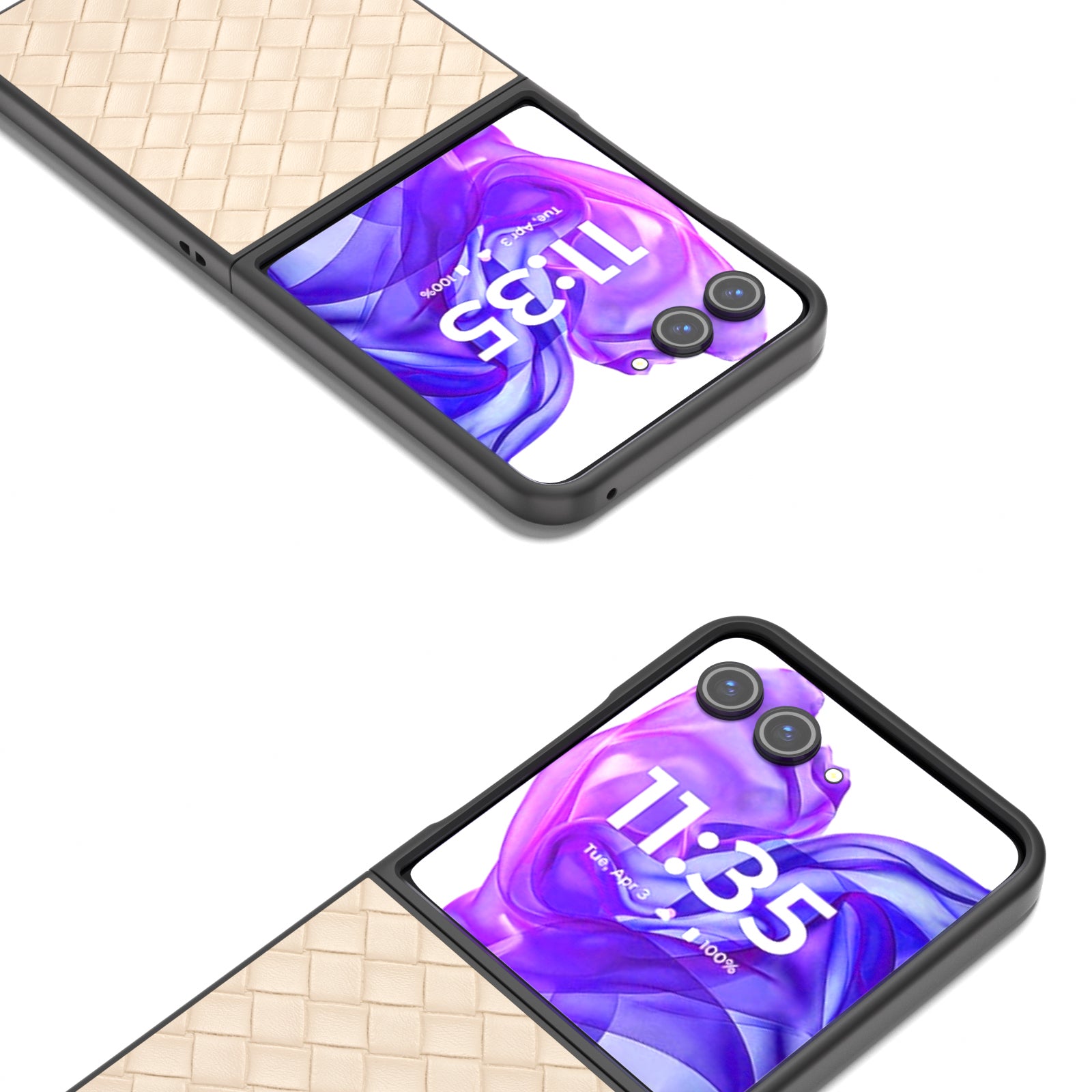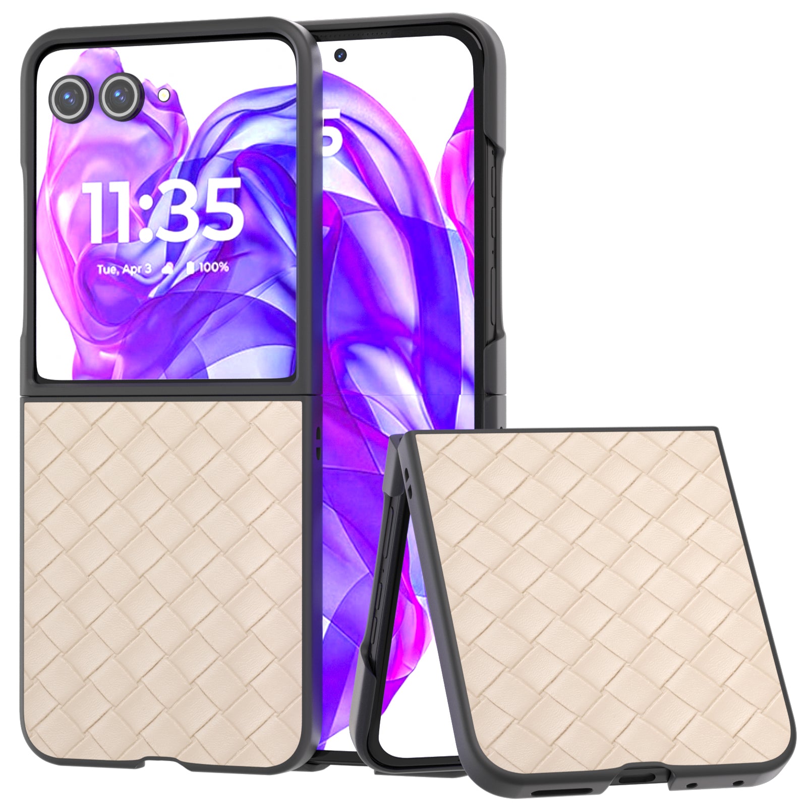 For Motorola Razr 50 Ultra 5G Case Woven Texture PU Leather Coated PC Folding Phone Cover - Beige
