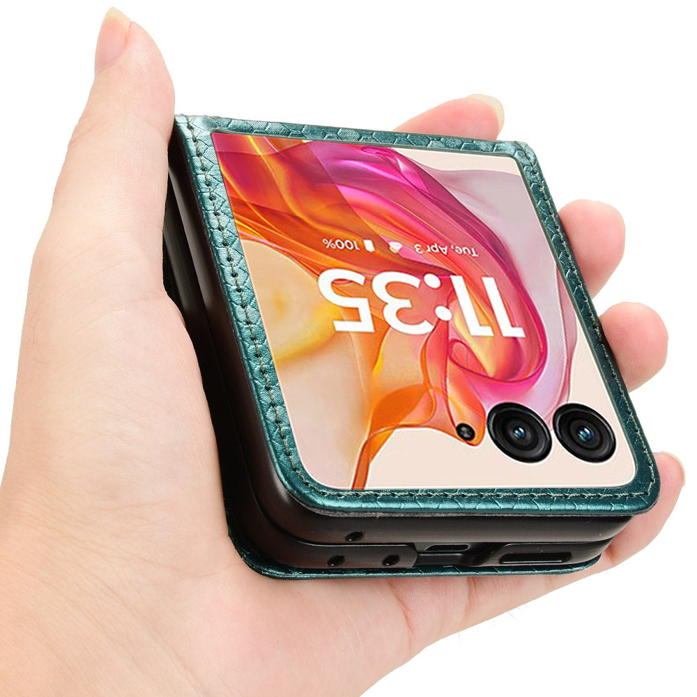 For Motorola Razr 50 Ultra 5G Phone Case with Card Holder Imprinted Dot Pattern Leather Phone Cover - Green