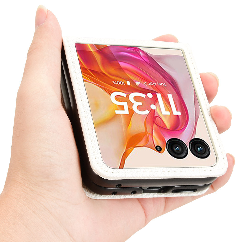 For Motorola Razr 50 Ultra 5G / Razr+ 2024 5G Case Card Holder PU Leather Phone Cover - White