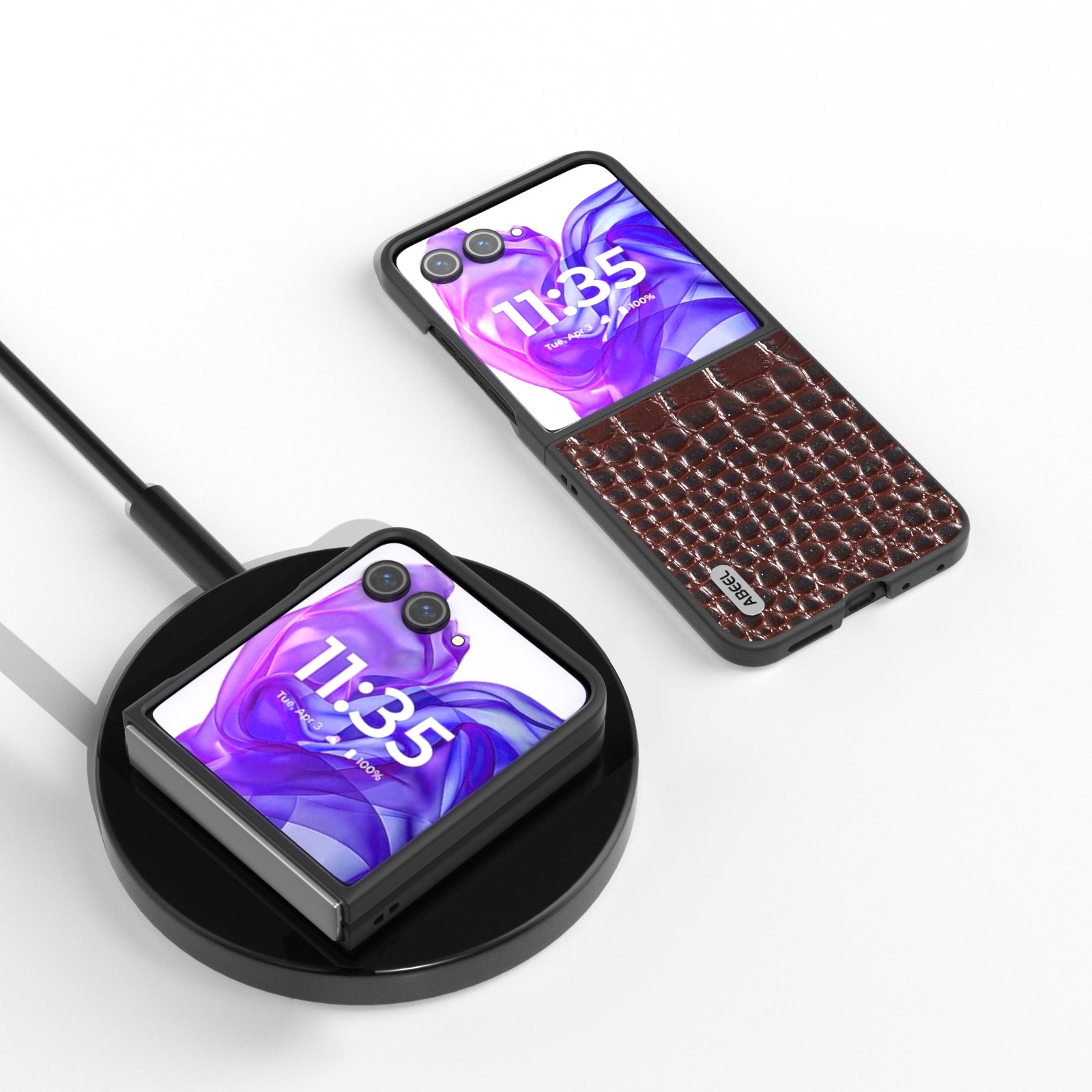 For Motorola Razr 50 Ultra ABEEL Genuine Leather Crocodile Pattern Black Edge Phone Case(Coffee)