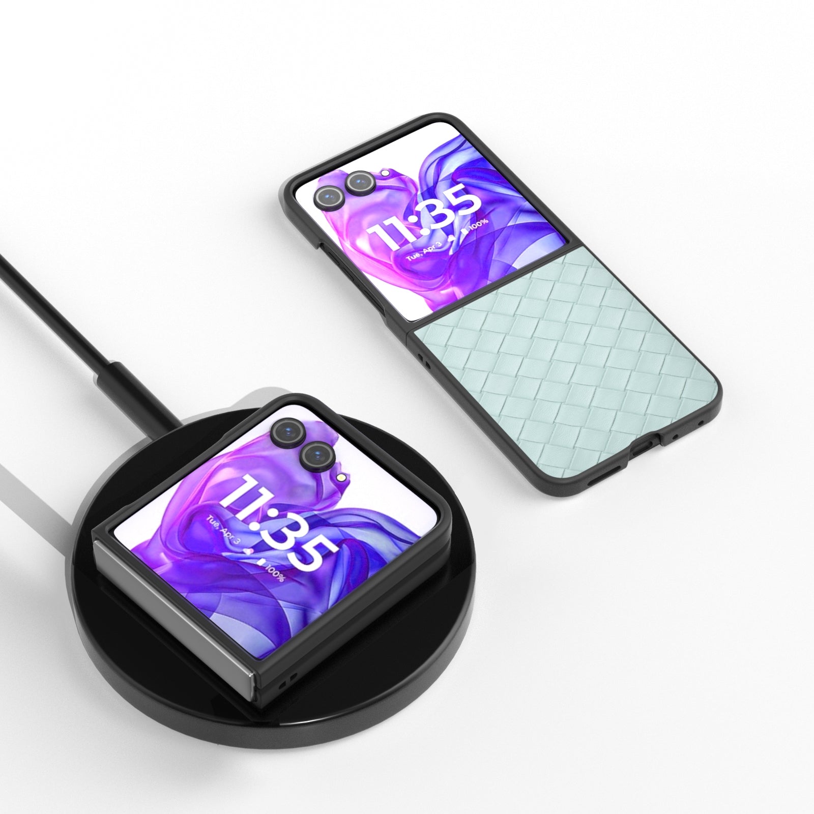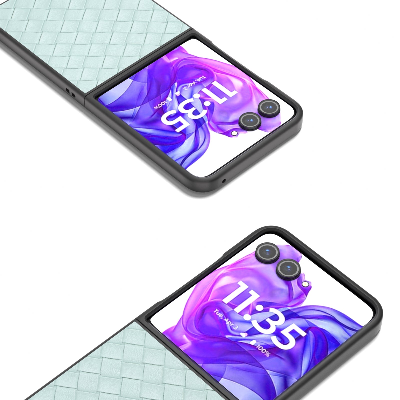 For Motorola Razr 50 Ultra Black Frame Woven Texture PU Phone Case(Light Green)