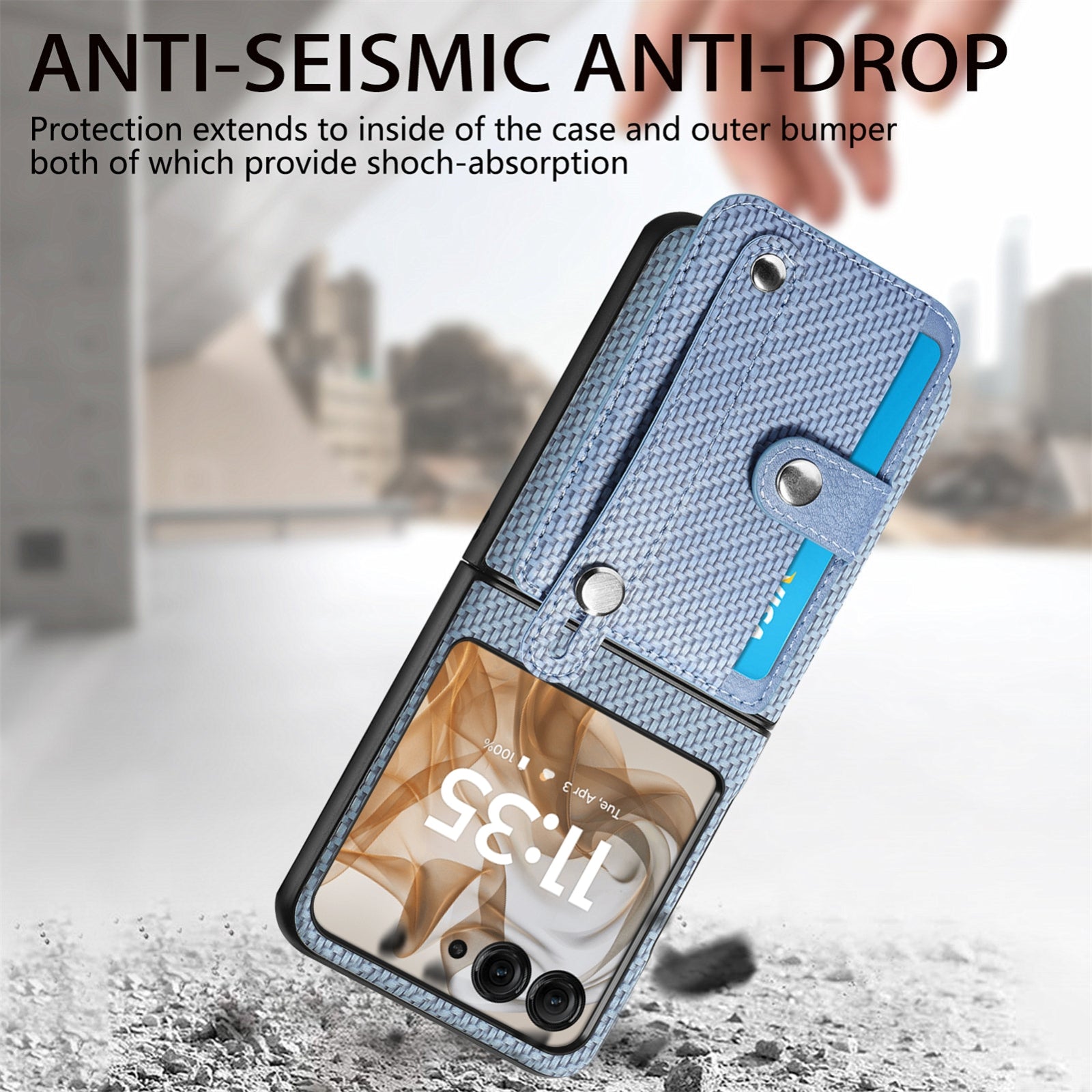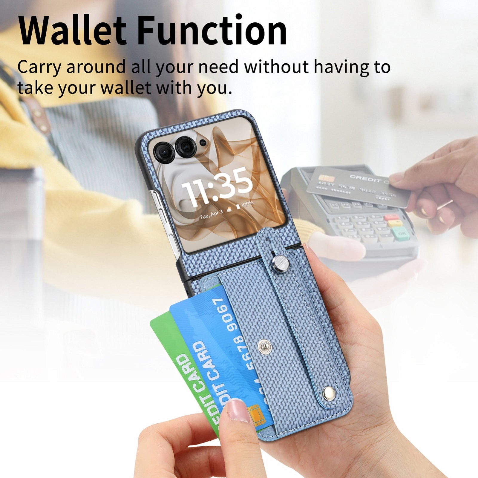 For Motorola Razr 50 Ultra Wristband Kickstand Card Wallet Back Cover Phone Case(Blue)