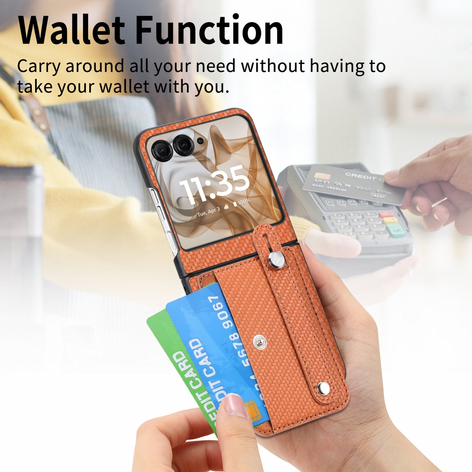 For Motorola Razr 50 Ultra Wristband Kickstand Card Wallet Back Cover Phone Case(Brown)