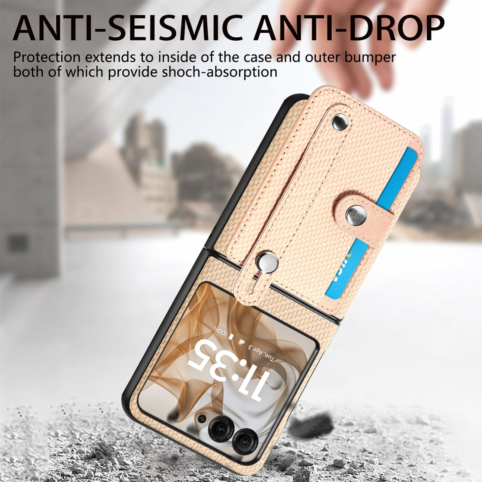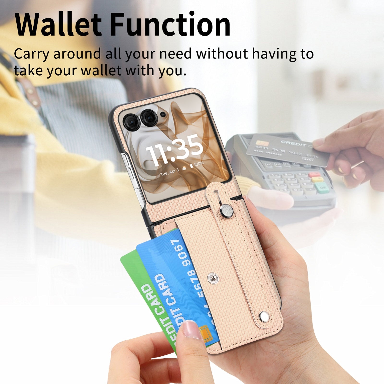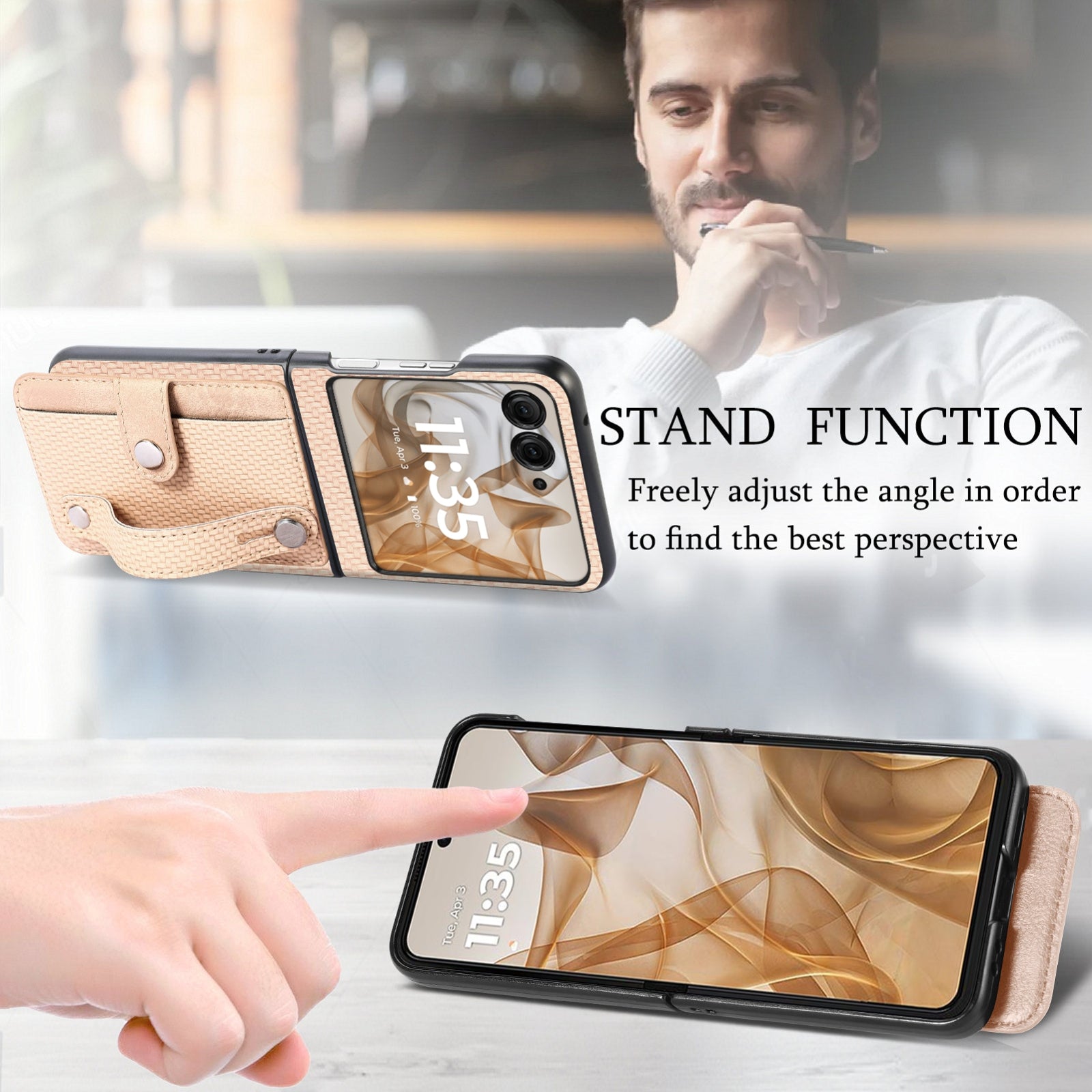 For Motorola Razr 50 Ultra Wristband Kickstand Card Wallet Back Cover Phone Case(Khaki)
