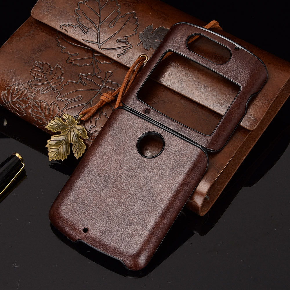 Litchi Texture Protector PU Leather Coated Plastic Cover for Motorola Razr 5G/Razr (2020) - Brown