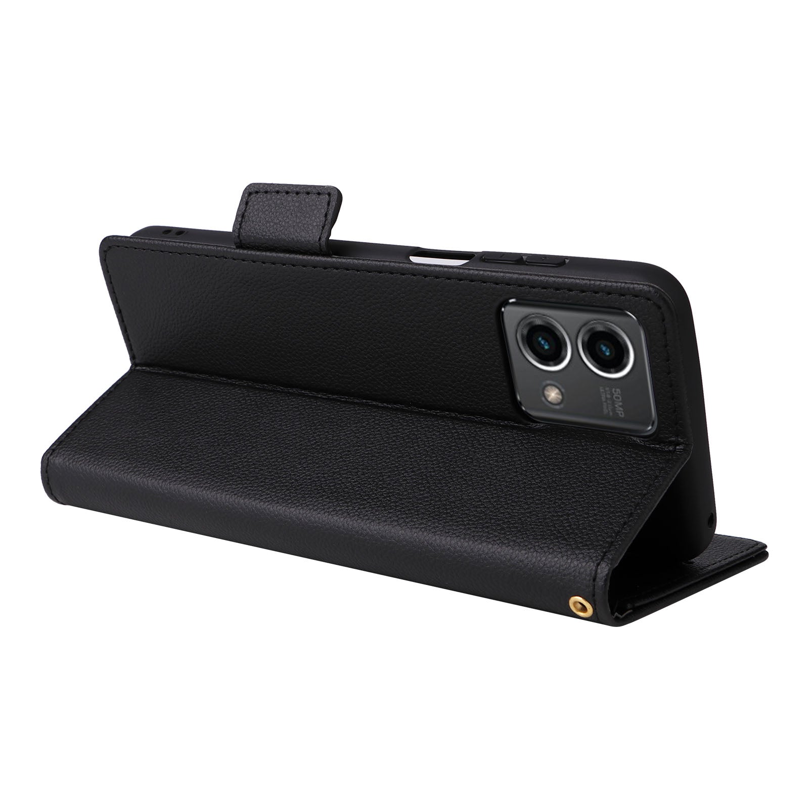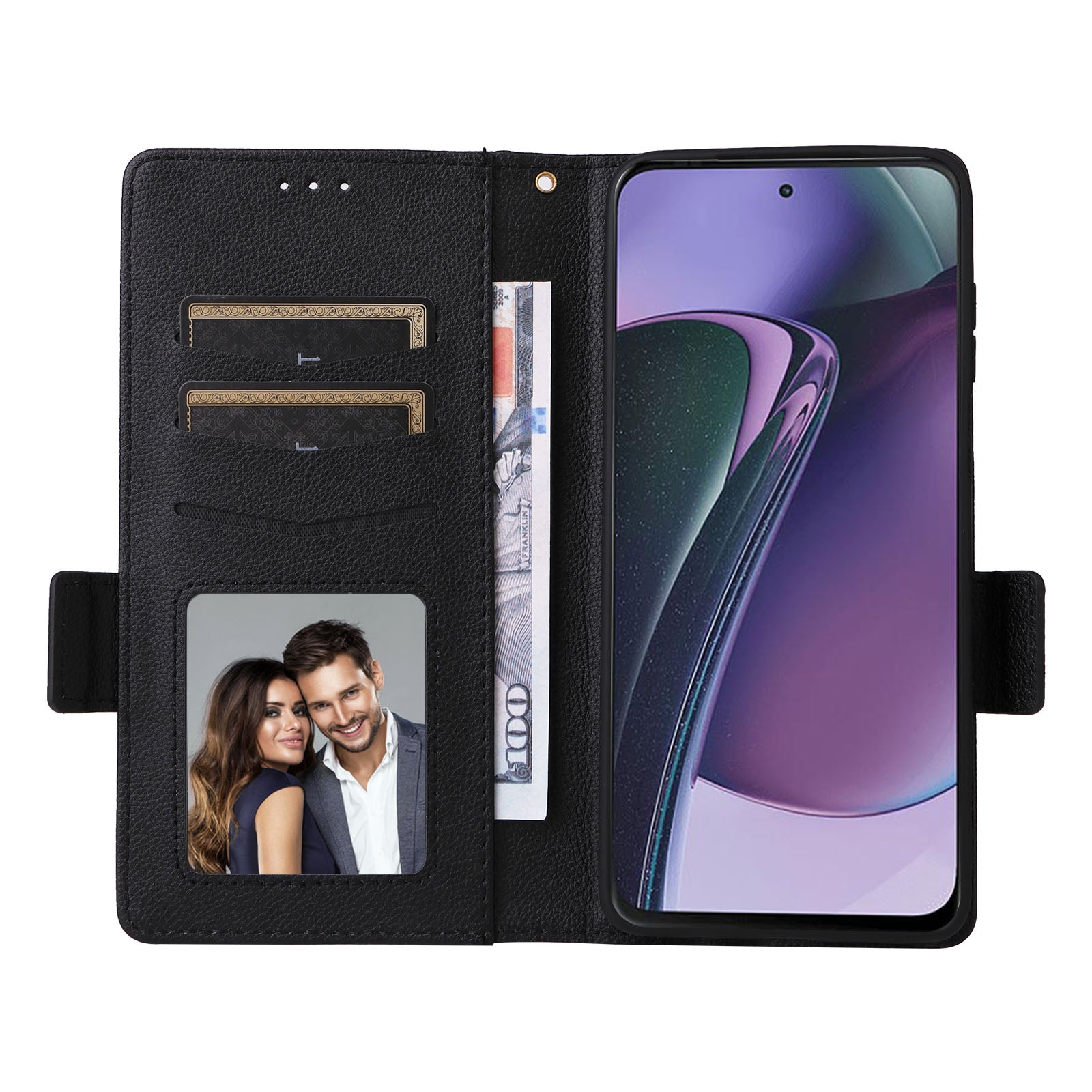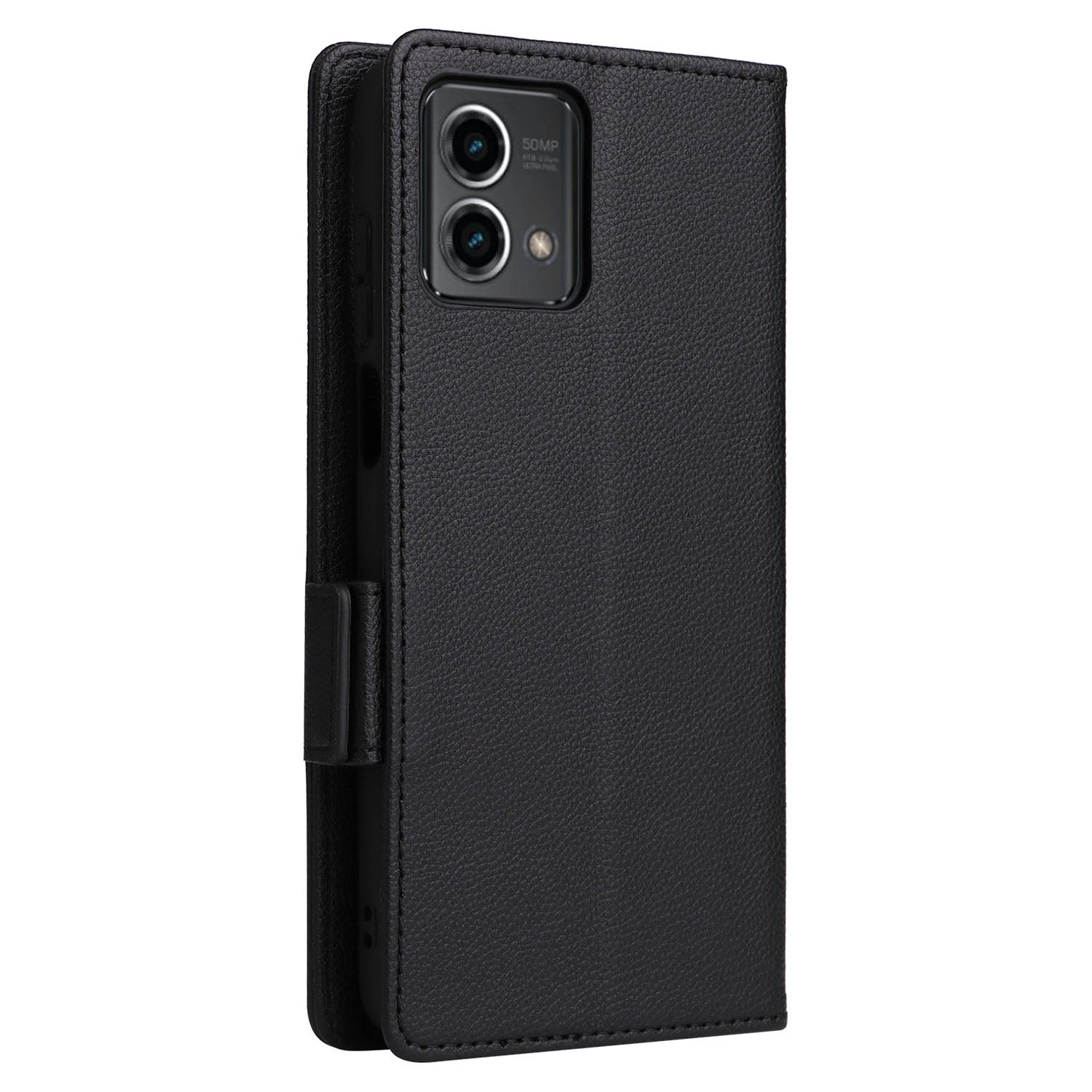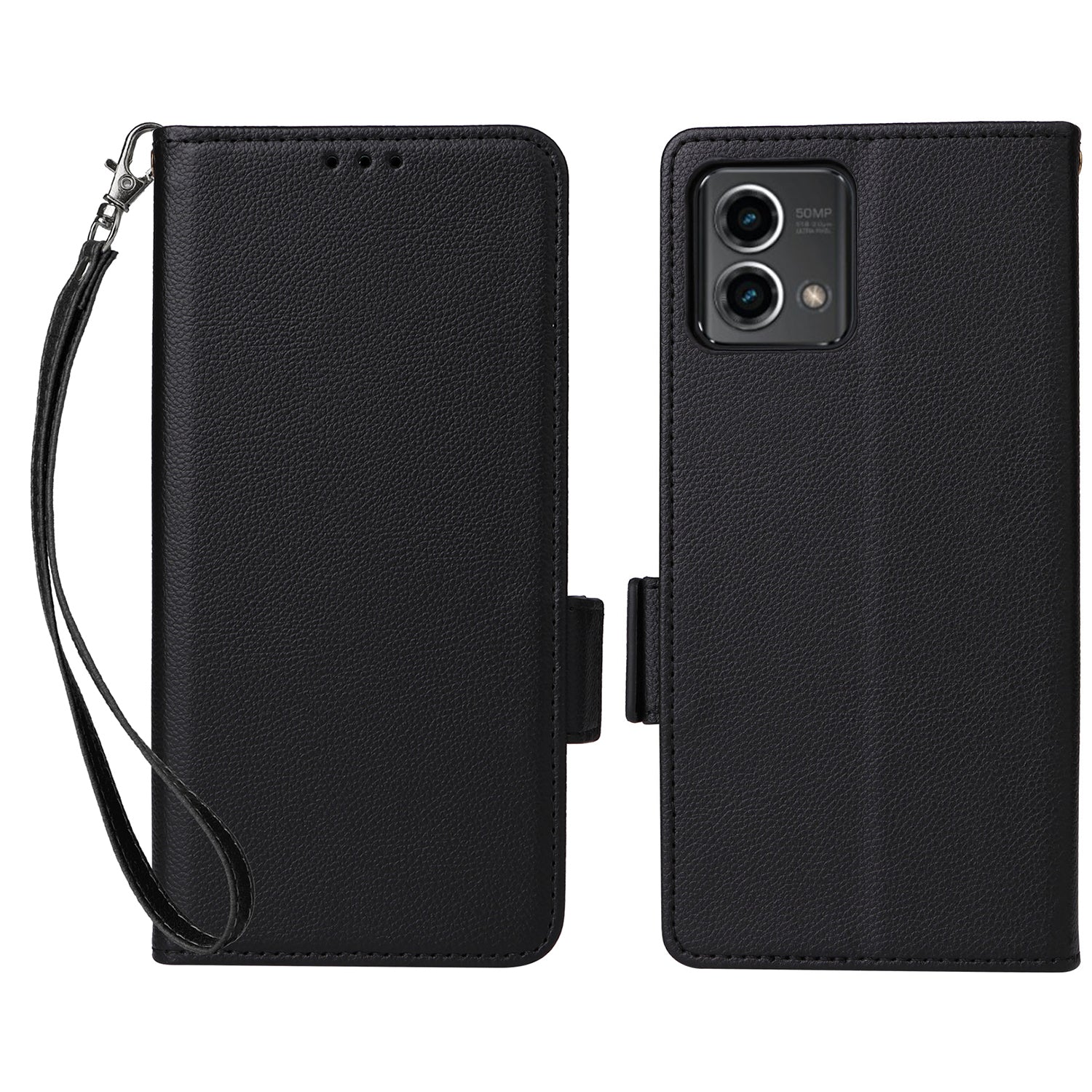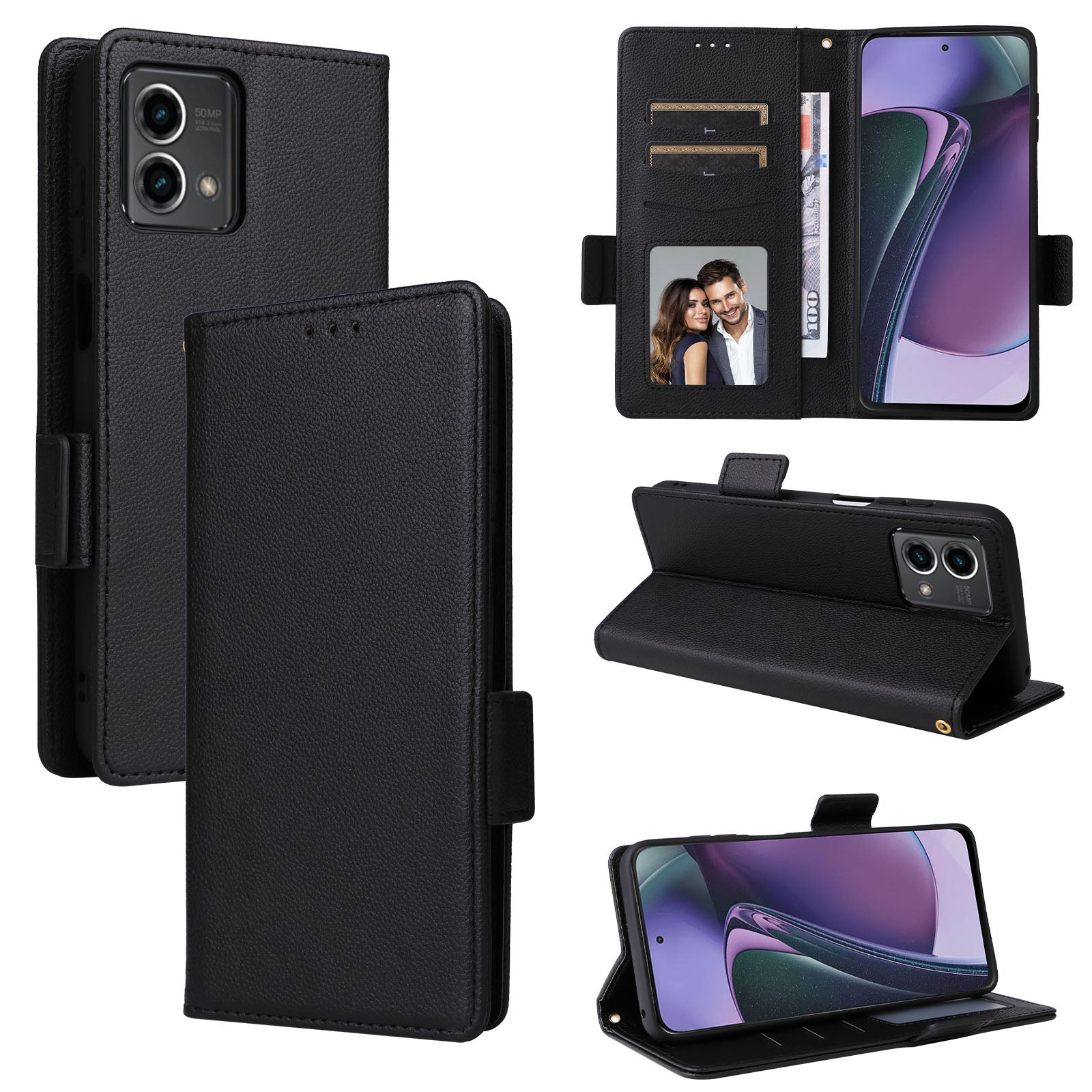Phone Case for Motorola Moto G Stylus (2023) Litchi Texture PU Leather Wallet Stand Cover - Black