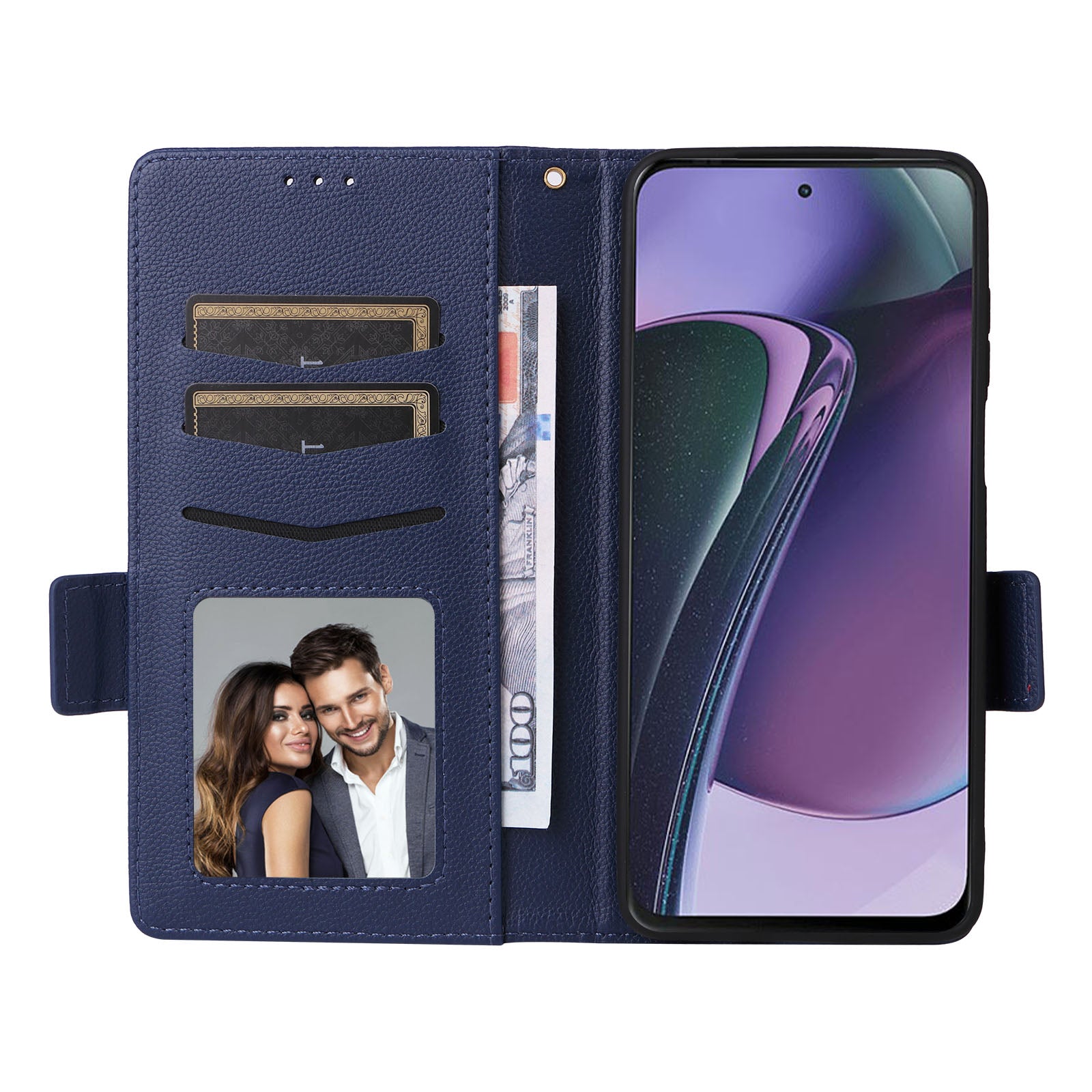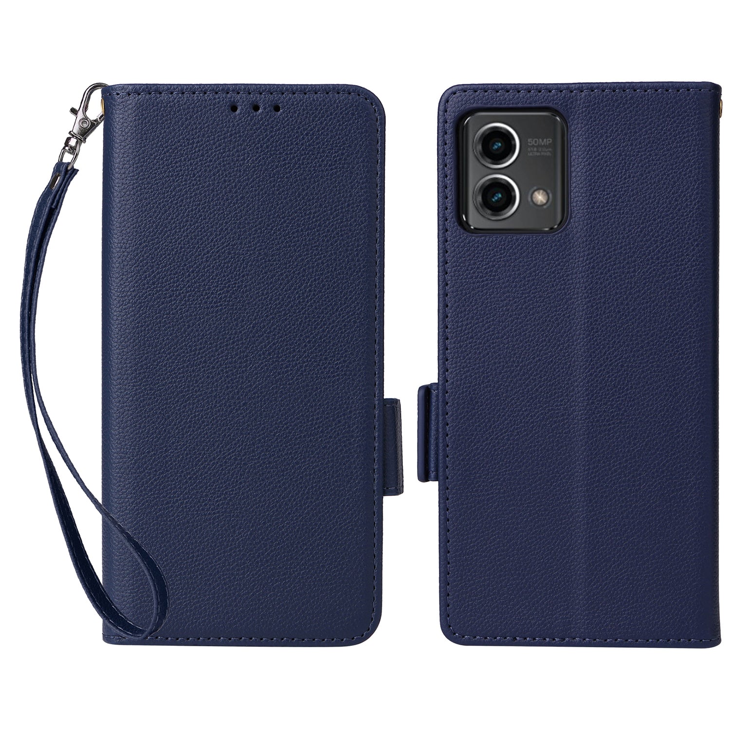 Phone Case for Motorola Moto G Stylus (2023) Litchi Texture PU Leather Wallet Stand Cover - Dark Blue