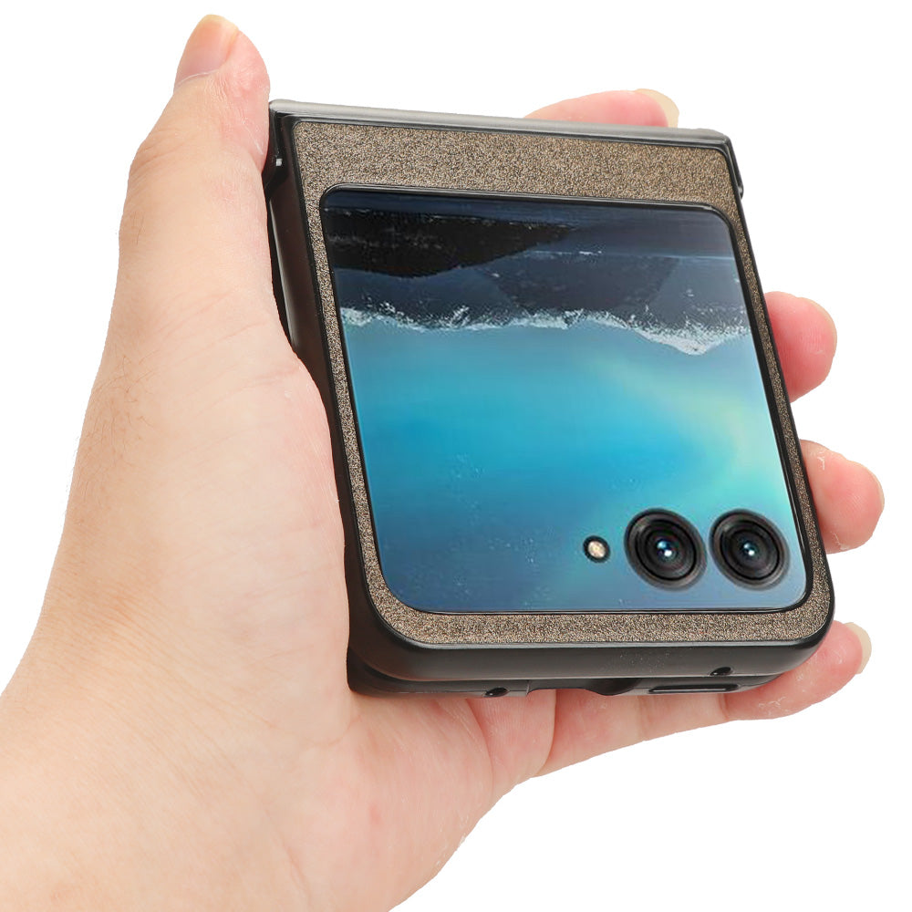 Protective Cover for Motorola Razr 40 Ultra 5G , Sandskin Texture PU Leather Coated Acrylic Folding Phone Case - Brown