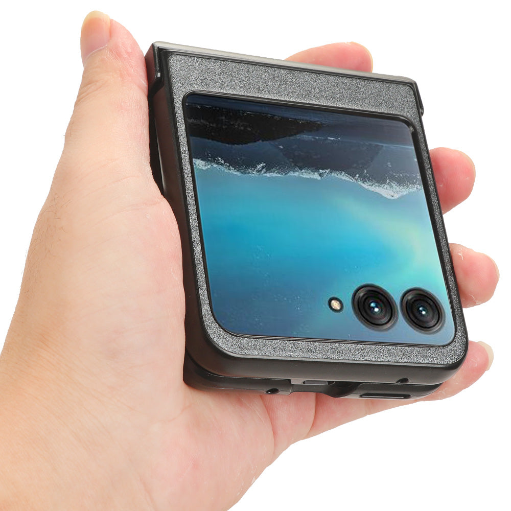 Protective Cover for Motorola Razr 40 Ultra 5G , Sandskin Texture PU Leather Coated Acrylic Folding Phone Case - Grey