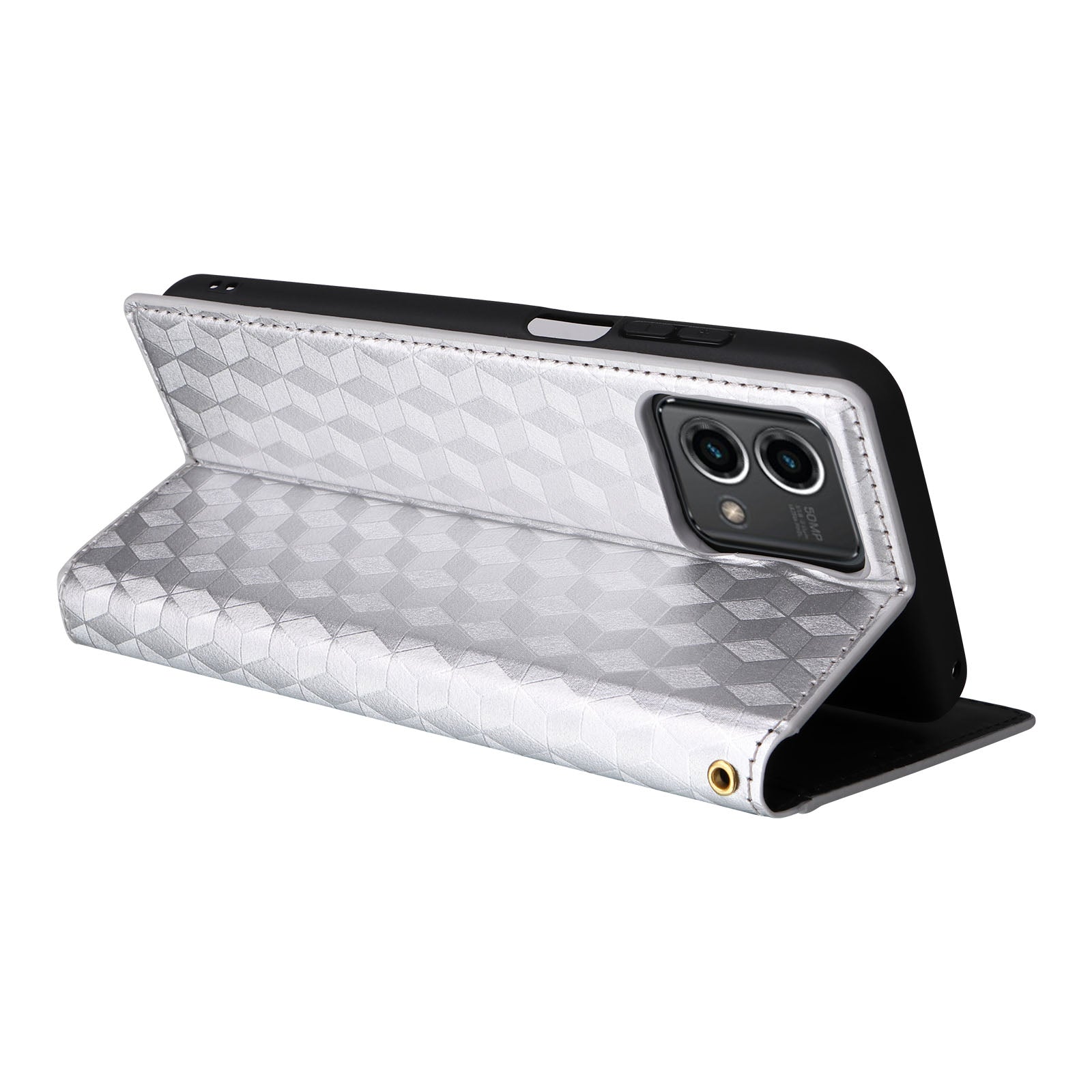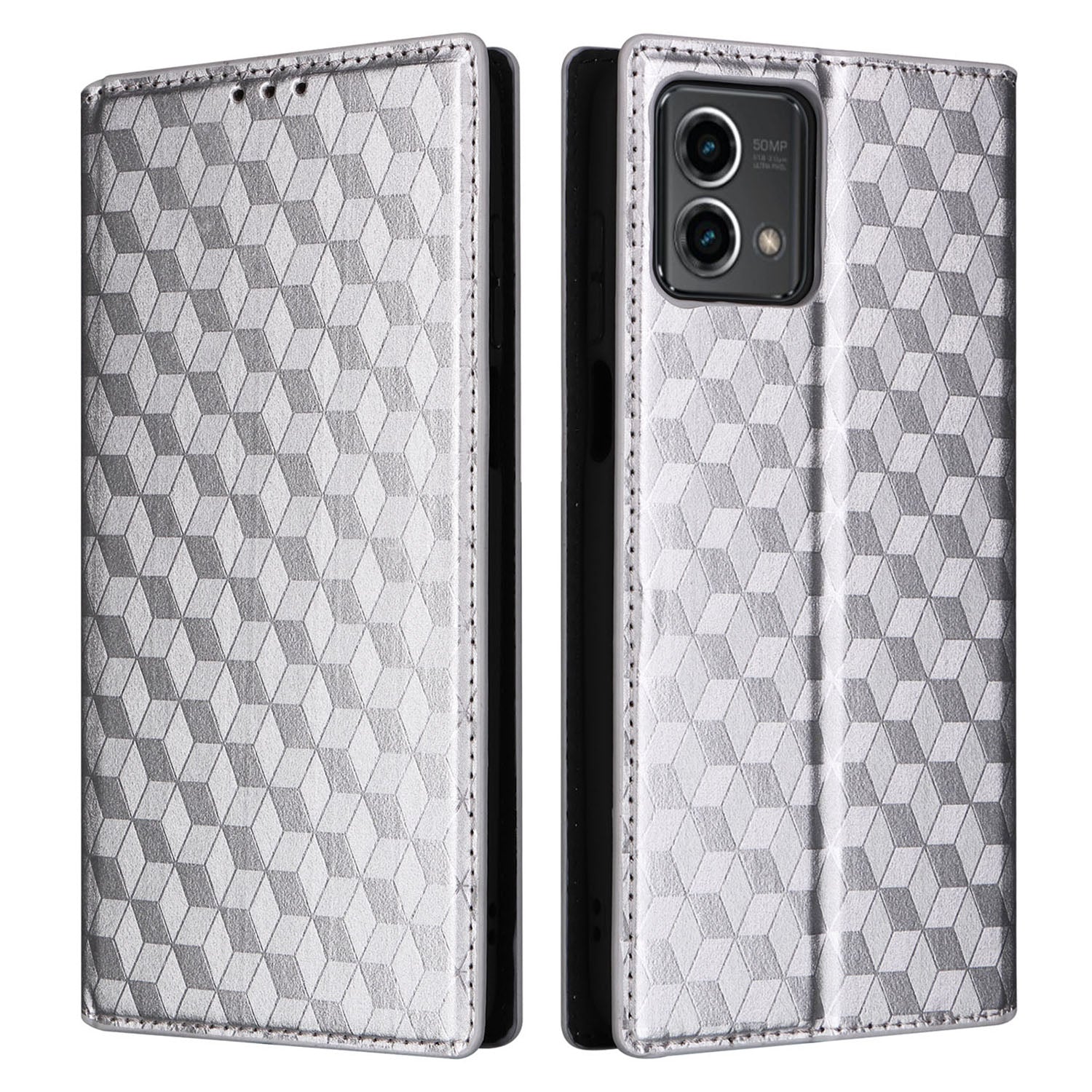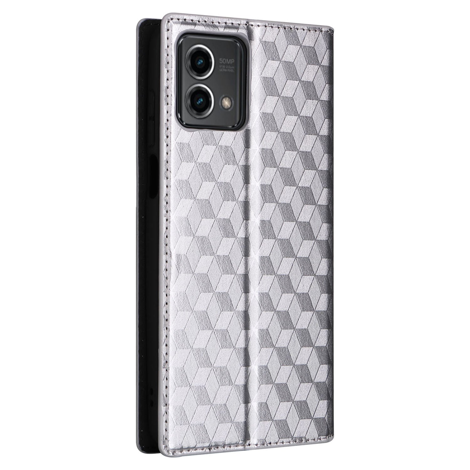 PU Leather Wallet Cover for Motorola Moto G Stylus (2023) Rhombus Imprinted Stand Phone Case - Silver